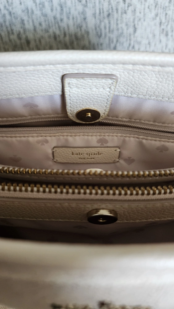 Cute Kate Spade tote bag in a neutral beige striped pattern! It's in great condition and perfect for everyday use. The interior has a lovely spade pattern lining. You'll love it 🤍