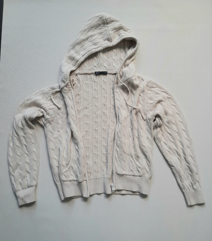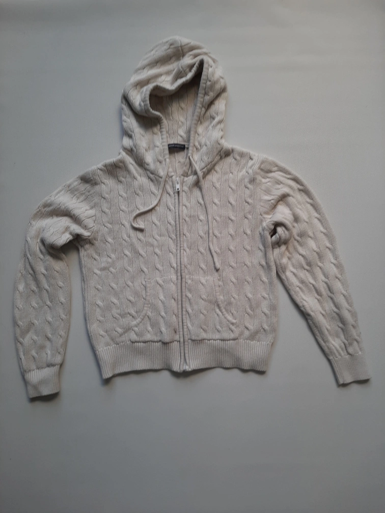 Cozy Brandy Melville knit zip-up hoodie. It's a MH123L size, perfect for layering or wearing on its own. Hand wash in cold water to keep it looking its best!