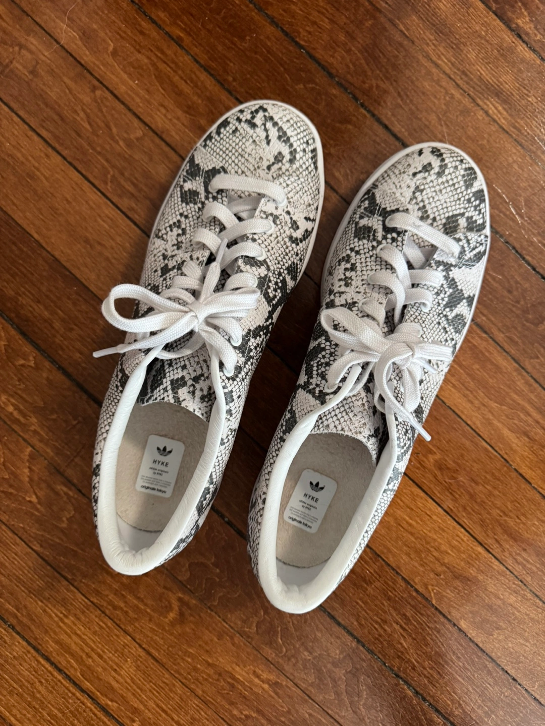 Selling a pair of Adidas x HYKE Stan Smith sneakers with a cool python print! They're in great condition and ready for a new home. These shoes feature the classic Stan Smith silhouette with a unique twist from HYKE, making them a stylish addition to any wardrobe. Men’s. Size 11.5.