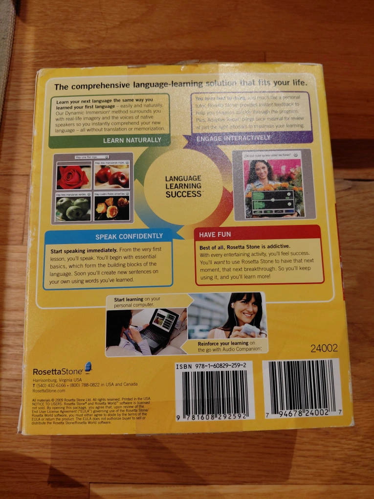 Selling a Rosetta Stone language learning program for Spanish (Latin America). This includes levels 1, 2, 3, 4, and 5. Start speaking immediately with essential basics and build new sentences using your own words