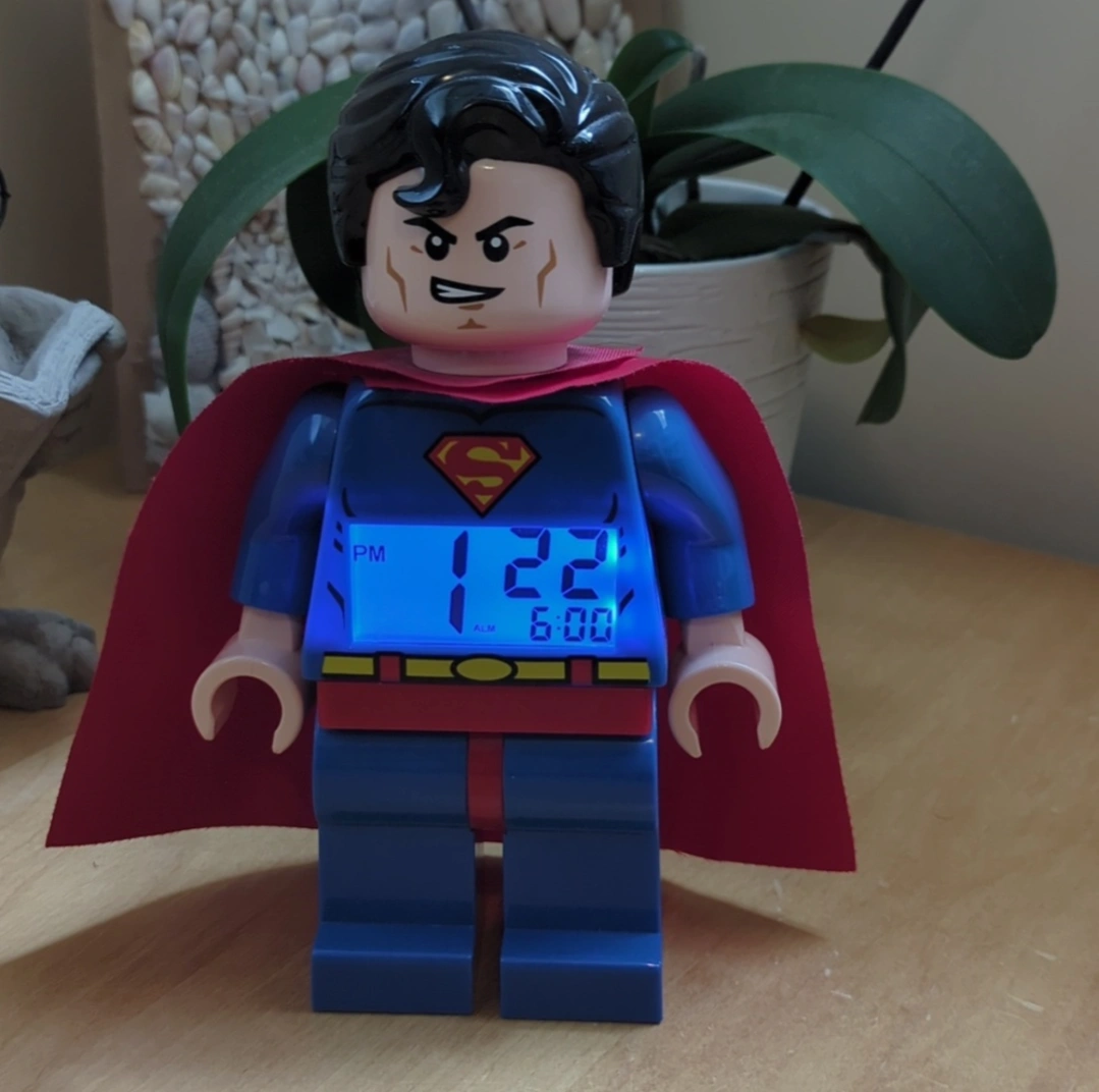 Selling a LEGO Superman alarm clock! It's in great shape and ready to help your little superhero wake up on time. Features a digital display and alarm function. Perfect for a kid's room or any Superman fan!