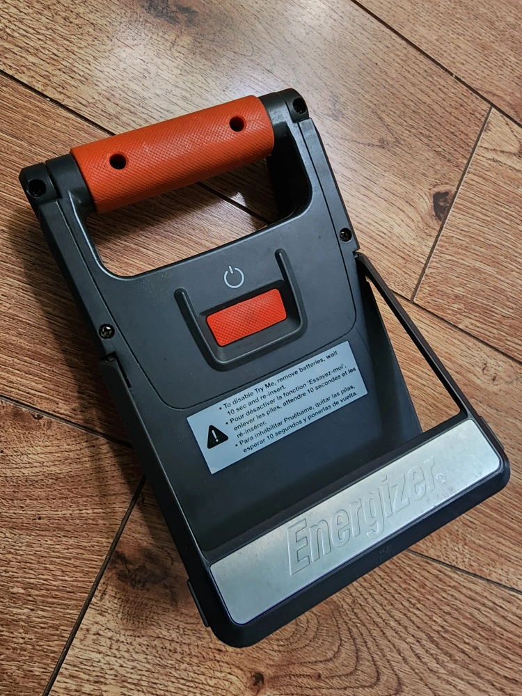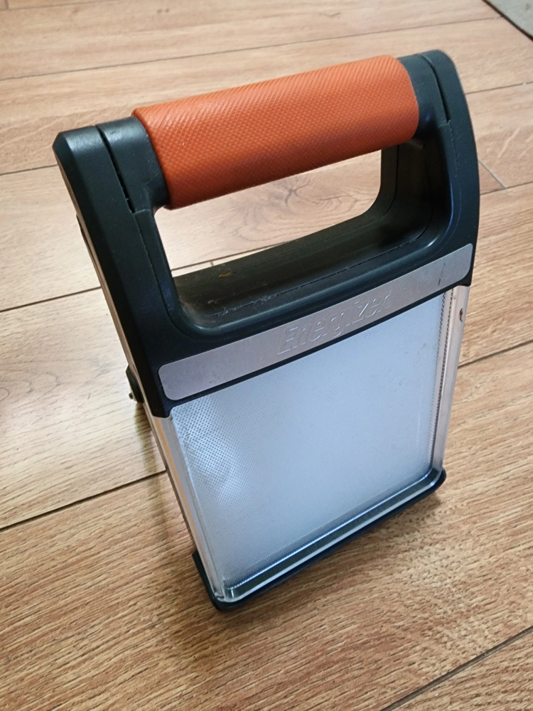 Selling an Energizer LED folding task light! It's great for any workspace or for on the go. It has a folding stand for easy placement and an orange handle for easy carrying