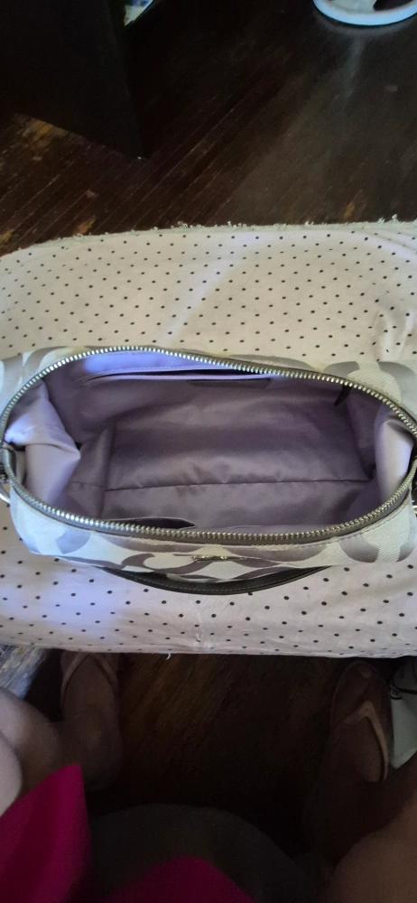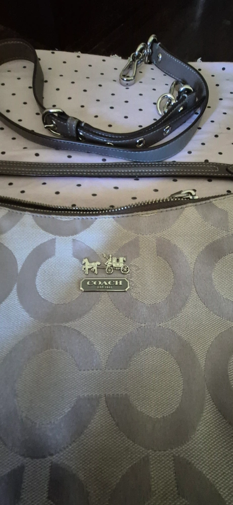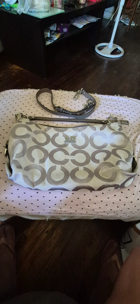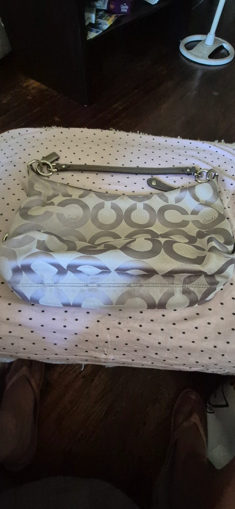 Selling a Mint Condition Coach bag in a silver/grey colour. Well kept, clean, like Brand New. has an adjustable strap. The bag features the classic Coach logo pattern and tag in and out of bag. Perfect for everyday use!