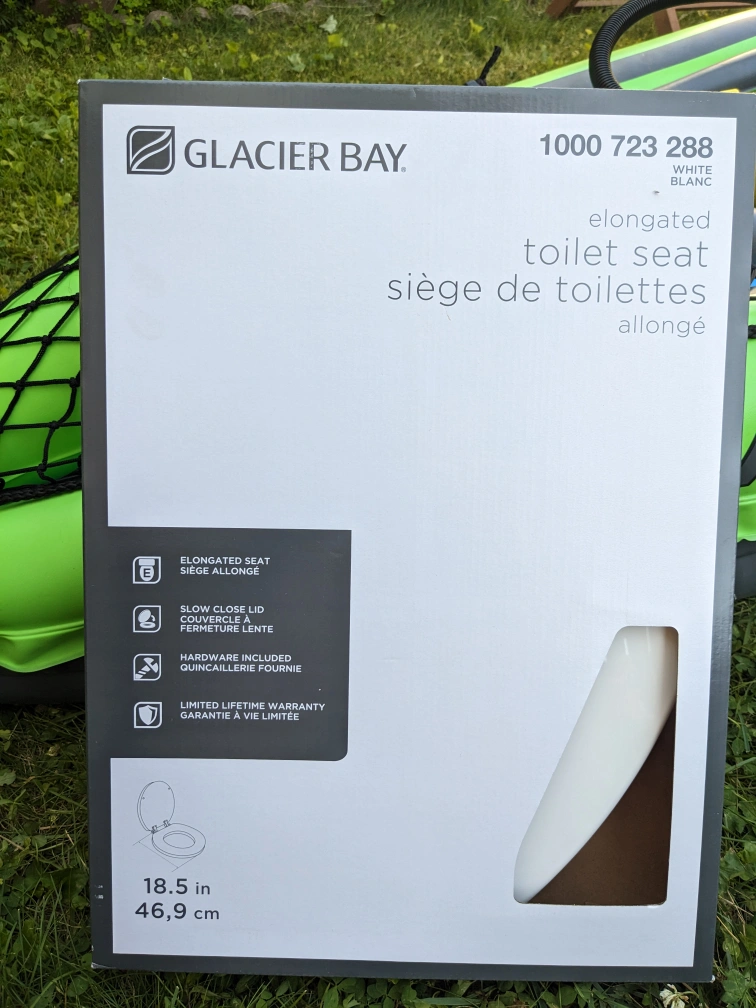 Selling a brand new Glacier Bay elongated toilet seat! It's still in the original box and has never been used.