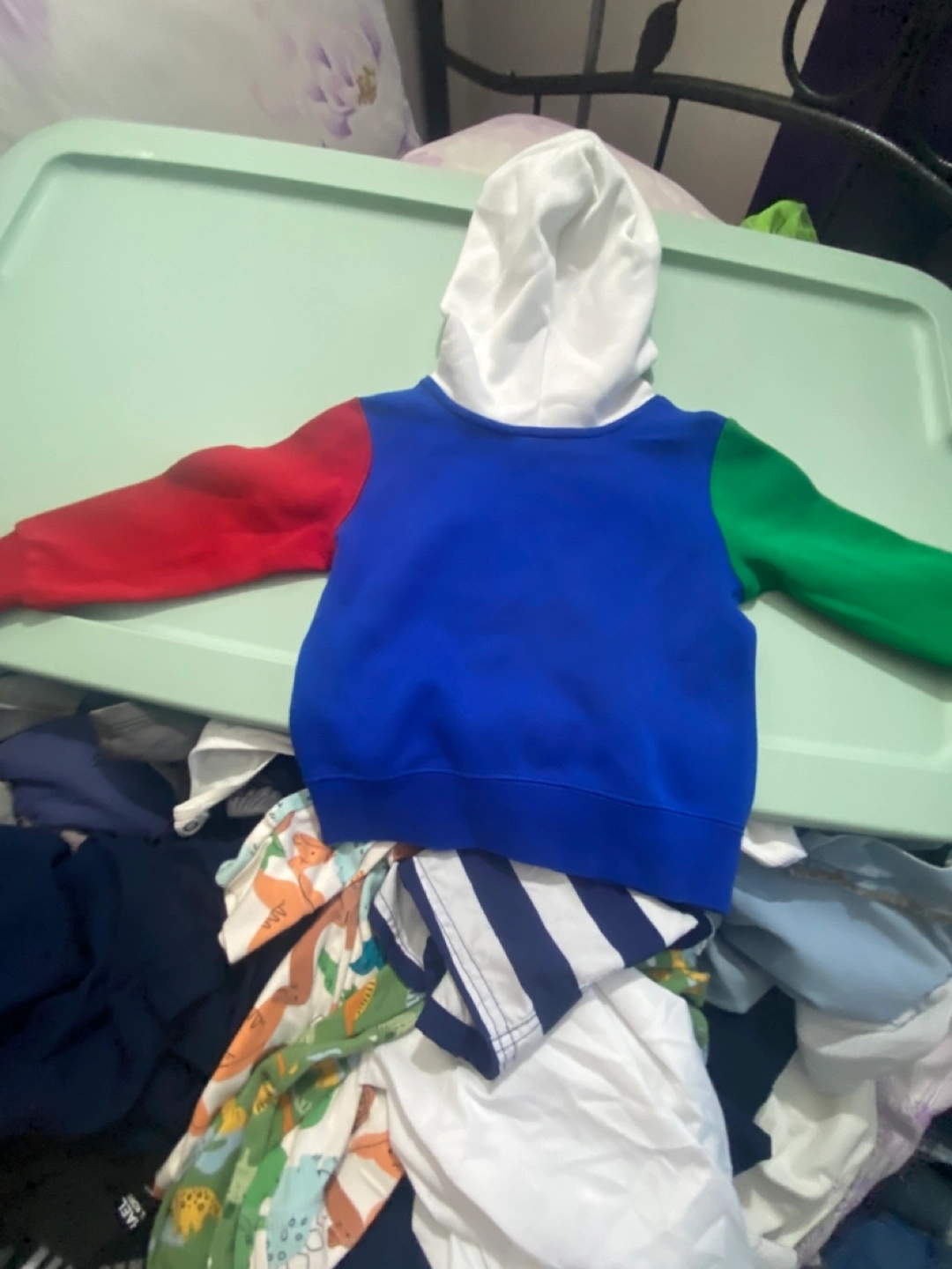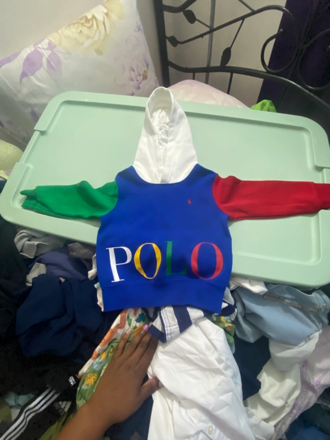 Selling a Polo Ralph Lauren color block hoodie. It features a vibrant design with red, blue, and green sleeves and the POLO logo across the chest. Perfect for adding a pop of color to your little one's wardrobe! The only thing is the hoodie has like 2 lil stains on it but other then that perfect condition