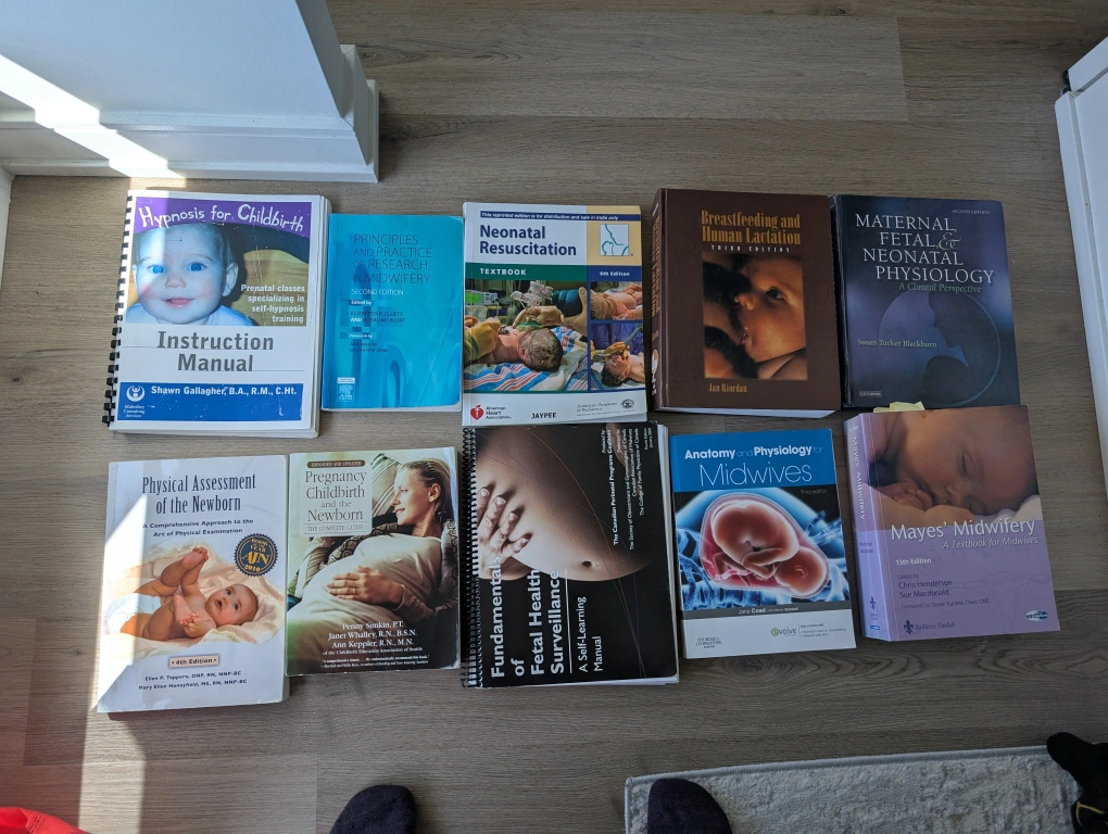 Selling a collection of textbooks and instruction manuals related to midwifery, childbirth, and neonatal care. Titles include: