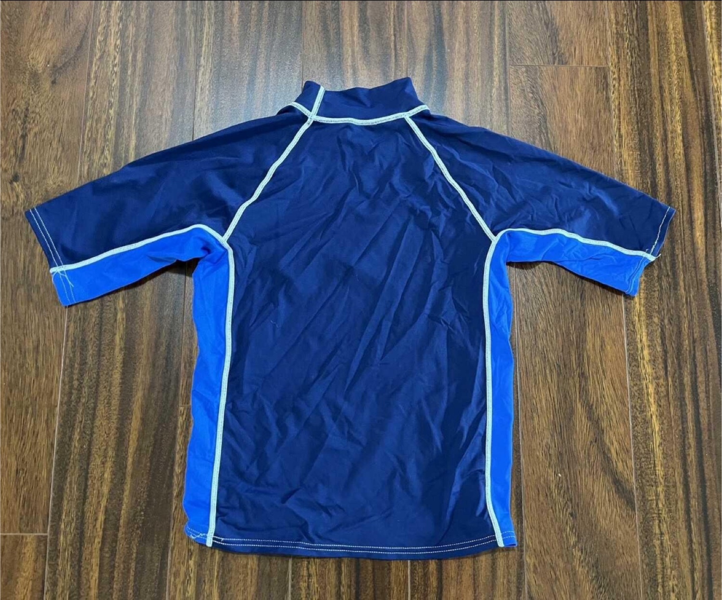 Like new! This kids’ rash guard from Tilos offers sun protection and durability for swimming or outdoor play. Size small. Navy and royal blue.