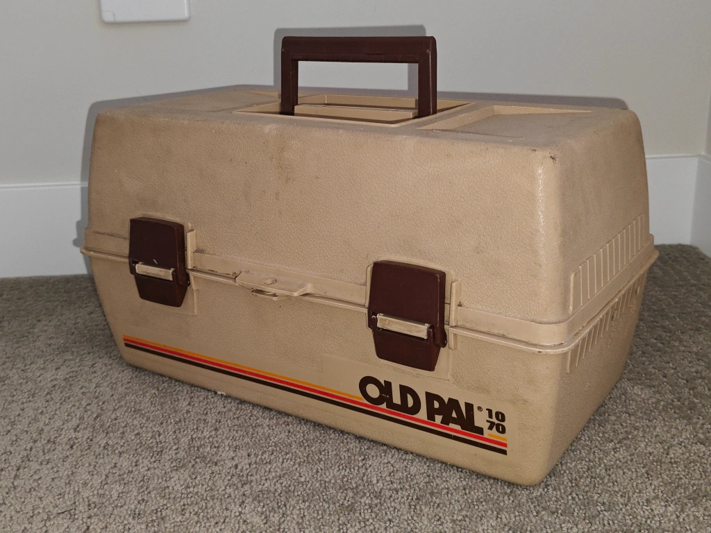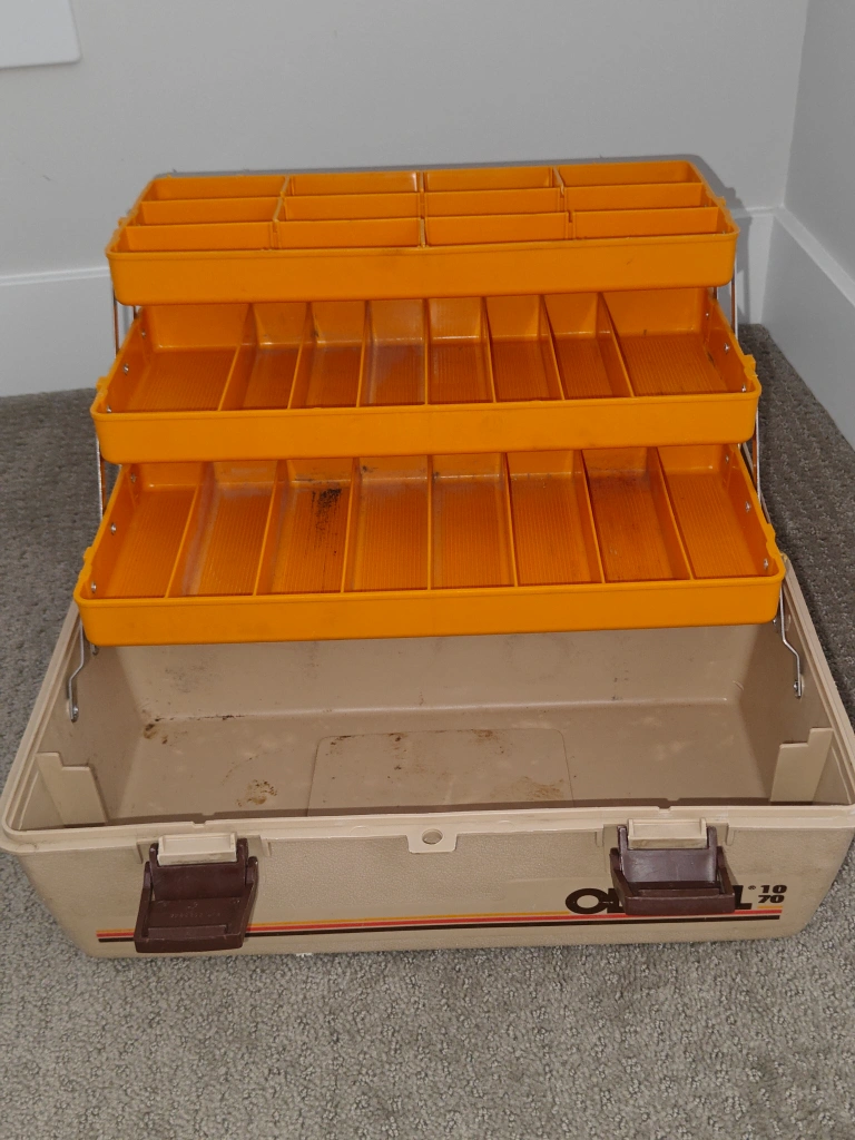 I am selling a Vintage Old Pal 1070 Tackle Box - Classic 3-Tier Fishing Lure Organizer in used, good condition. Its simple yet effective three-tier design has been a reliable choice for generations of anglers. Whether you're a collector of vintage fishing gear or just need a sturdy, dependable tackle box, this is a great find.