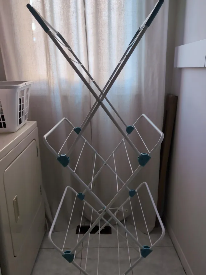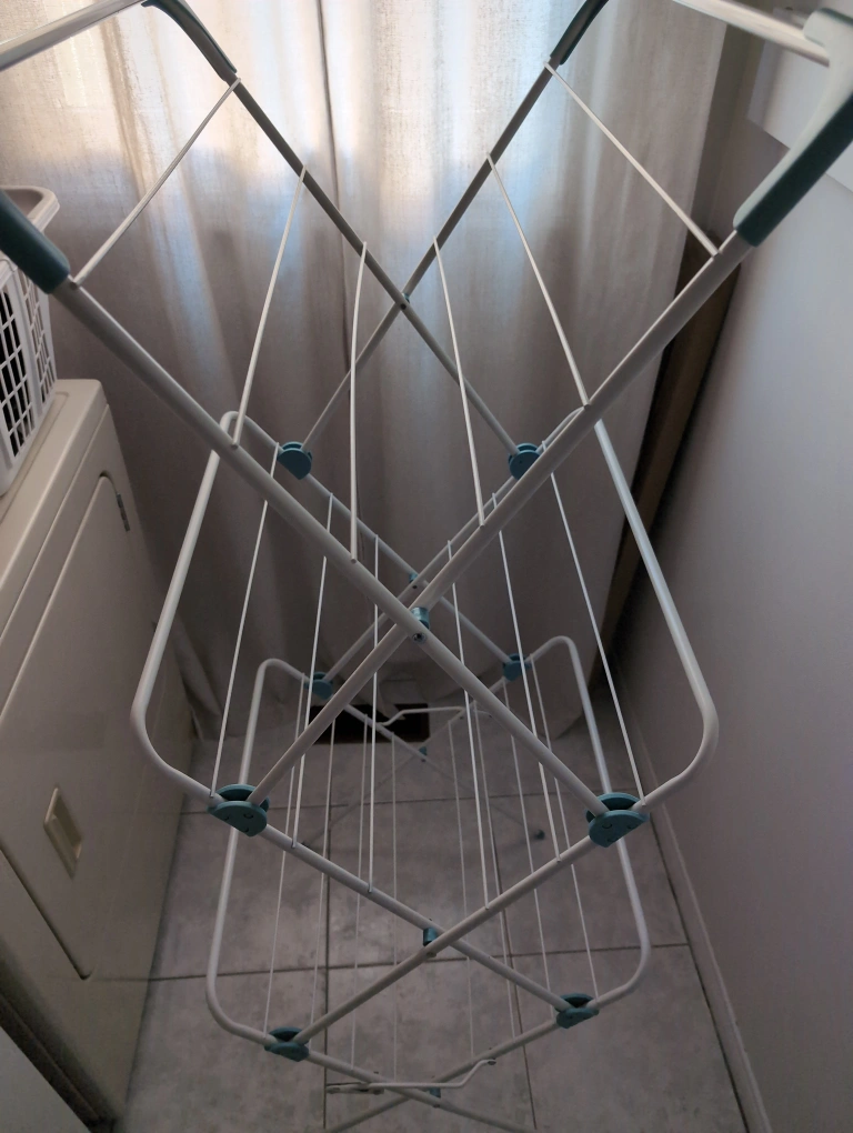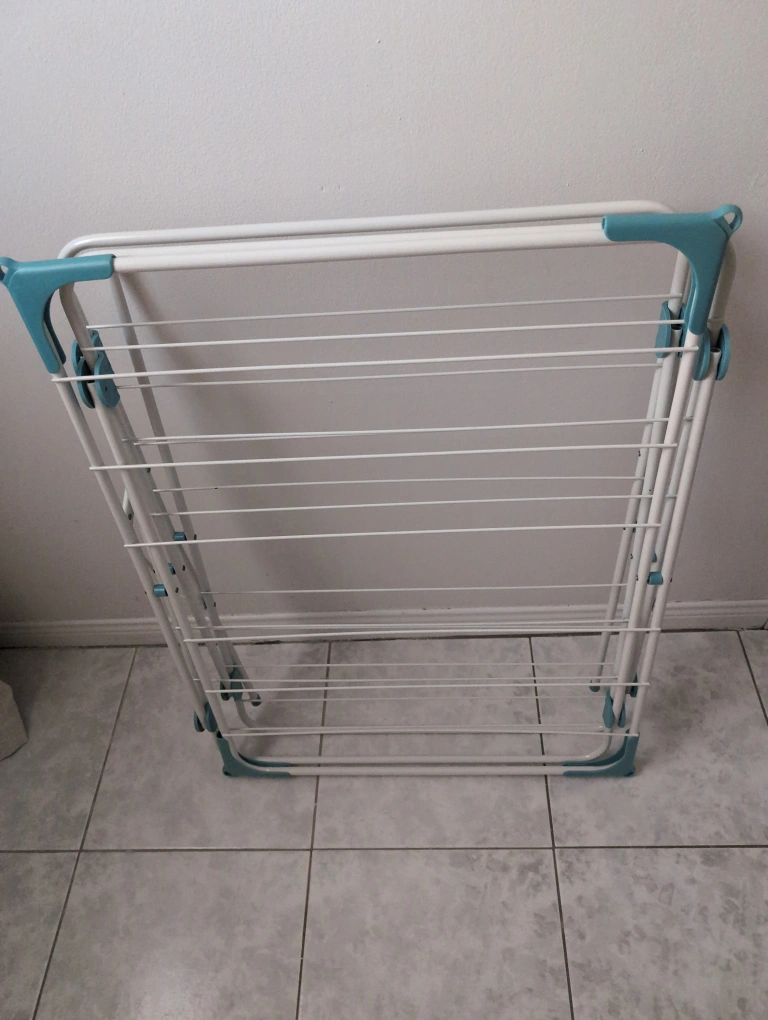 Selling a handy folding clothes drying rack. It's perfect for saving space and drying your clothes indoors, especially during the colder months. Great for apartments or smaller laundry rooms!