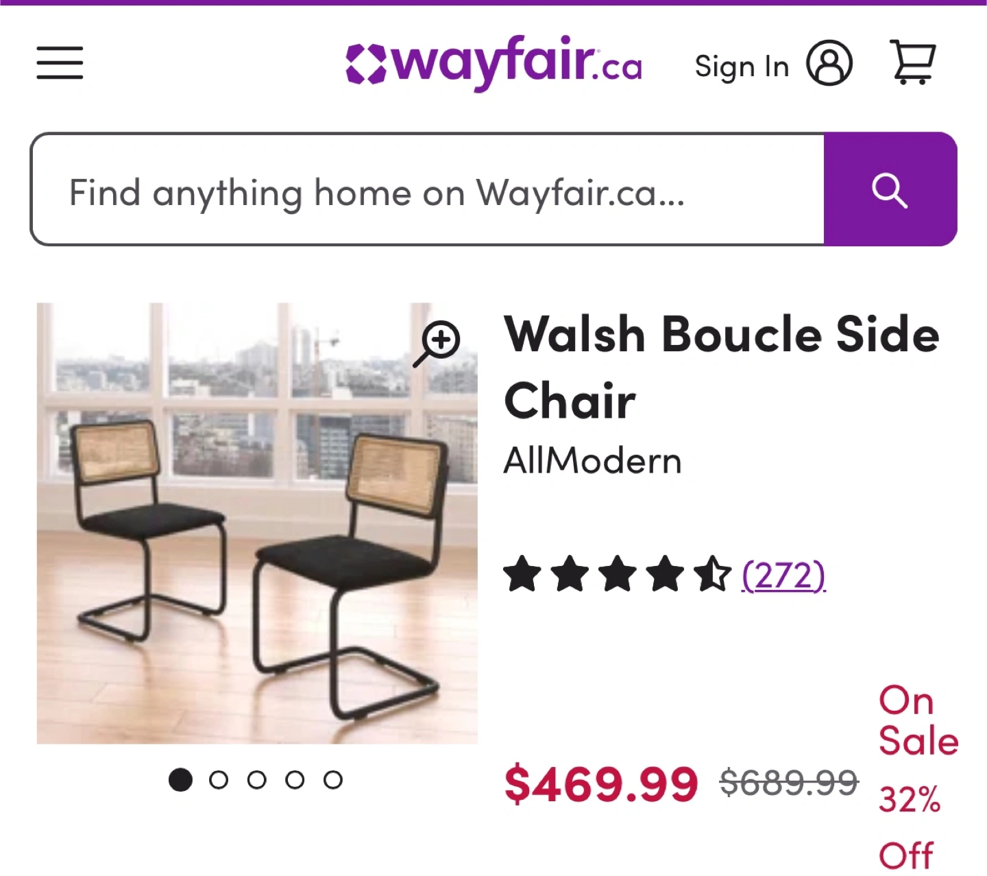 4 AllModern Walsh Boucle Side Chairs