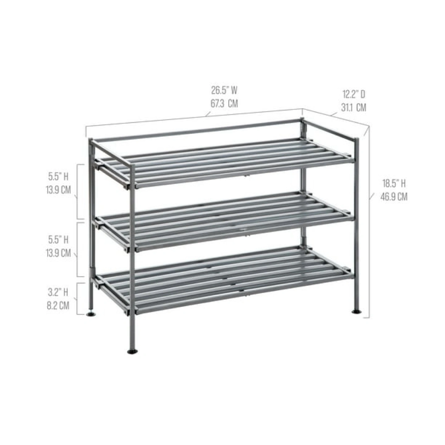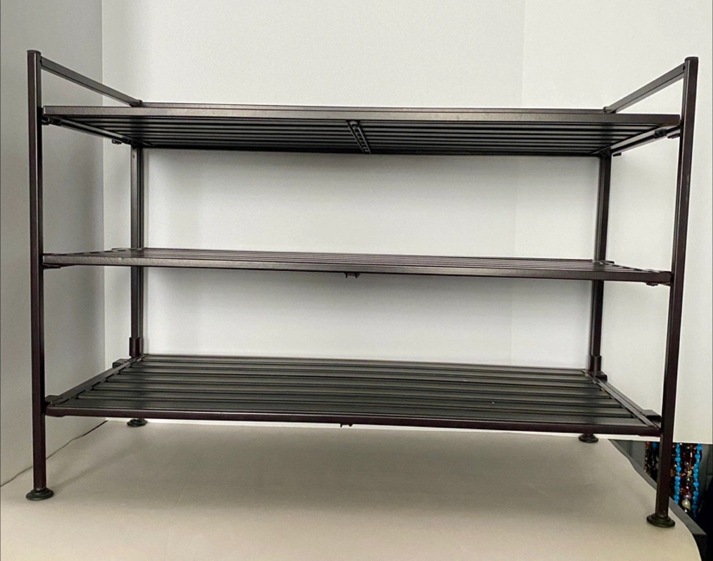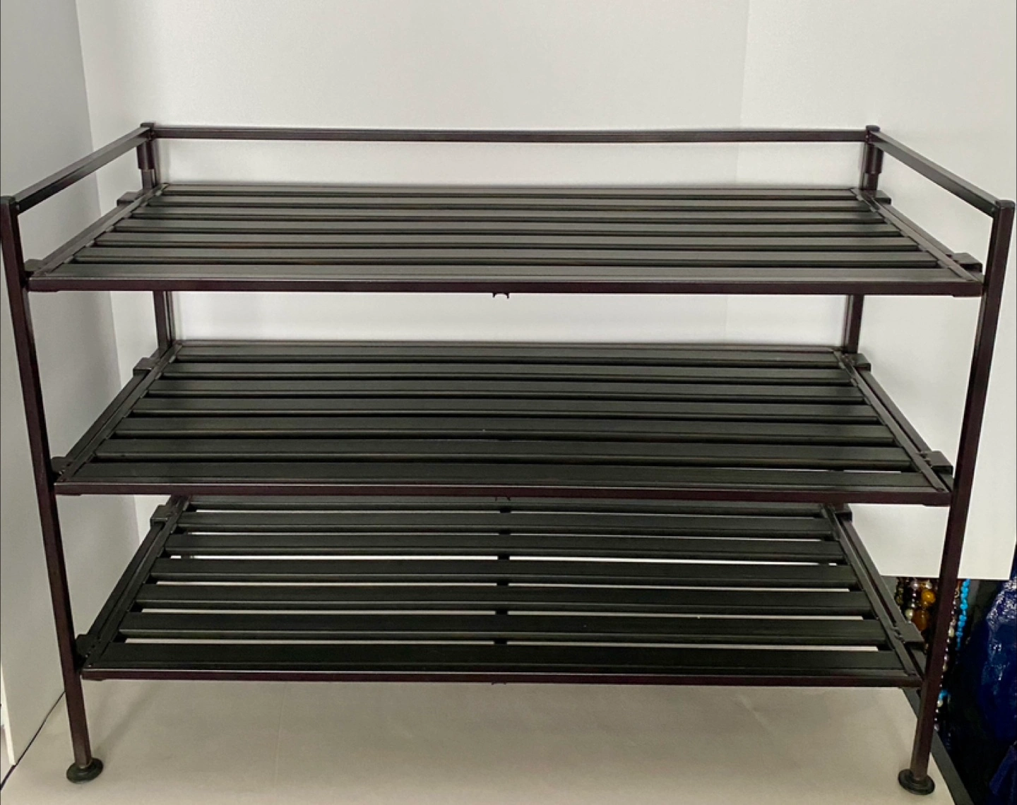 Selling a 3-tier metal shoe rack in great condition! It's perfect for organizing your shoes and keeping your entryway tidy.