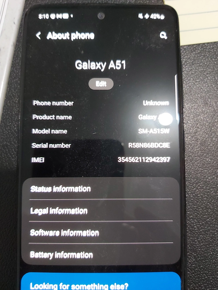 Selling a Samsung Galaxy A51, model number SM-A515W. It's in good condition and ready for a new owner!
