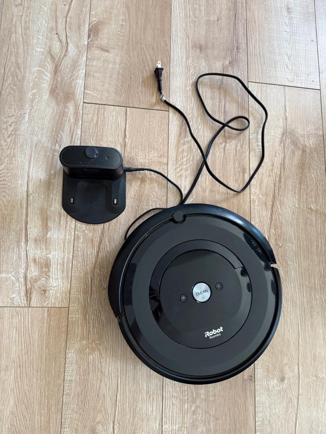 Selling a black Roomba robot vacuum! It comes with the charging dock and power cord. This little helper is great for keeping your floors clean with minimal effort. It's in good condition and ready for a new home!