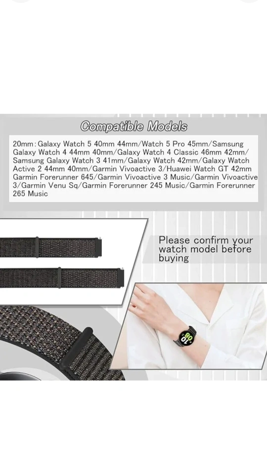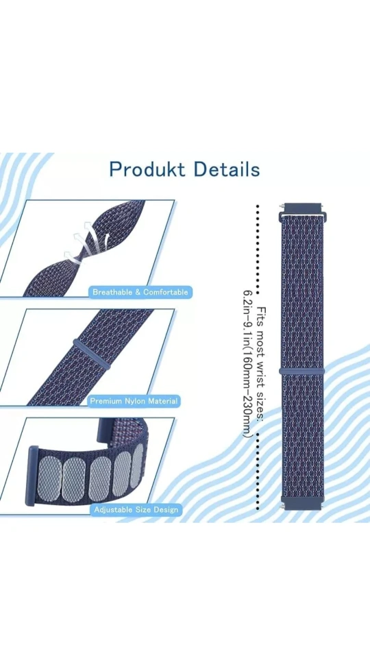 This watch band is made of premium nylon material, making it breathable and comfortable. It's easy to install and remove, and the size is adjustable to fit most wrists (6.2in-9.1in/160mm-230mm). It is compatible with Galaxy Watch 5, Watch 5 Pro, Galaxy Watch 4, and more!