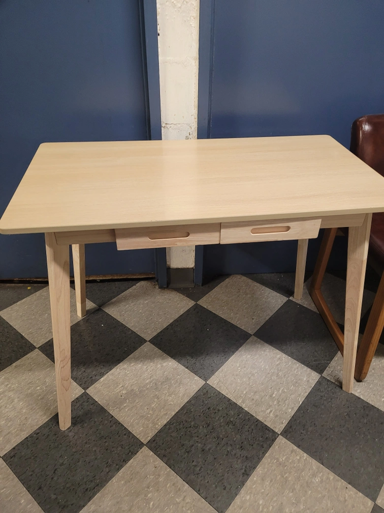 Selling a wooden desk that's in great condition! It features two convenient drawers for storage. Perfect for a home office or study space