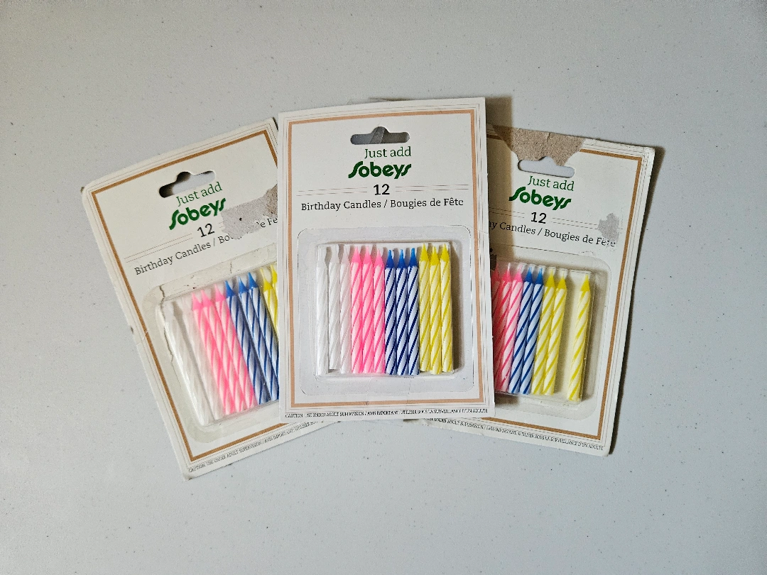 Selling packs of Just Add Sobeys birthday candles. Each pack contains 12 candles in a mix of fun colours... (34 candles in total)! Perfect for your next celebration πβοΈ