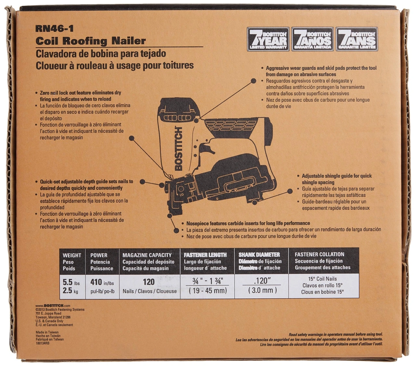 BOSTITCH Coil Roofing Nailer, 1-3/4-Inch to 1-3/4-Inch