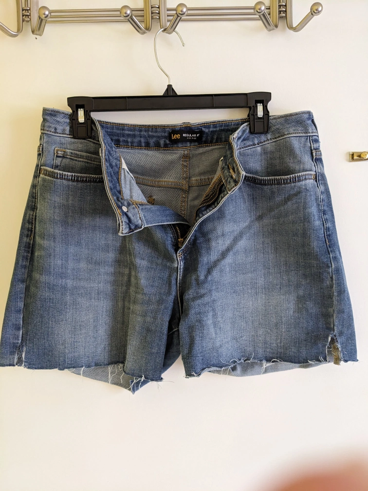 Selling a pair of Lee denim shorts in size 14. They're a regular fit and made from a blend of cotton, polyester, and spandex for a bit of stretch. Perfect for casual wear! Fit more like a size 12
