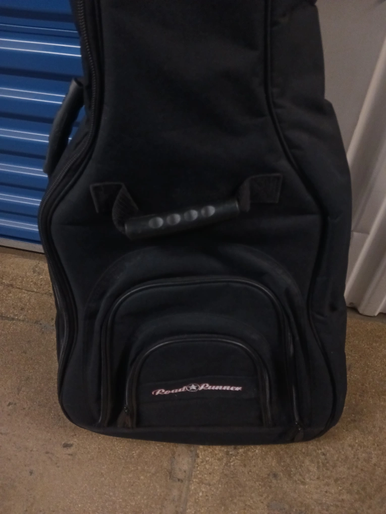 Here's a black Road Runner guitar gig bag! It's in great condition and ready to protect your guitar. It has a handle and backpack straps for easy carrying..Bring your guitar and see if it fits