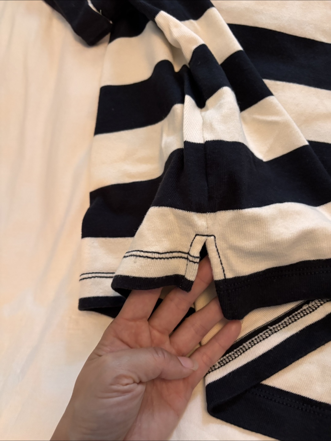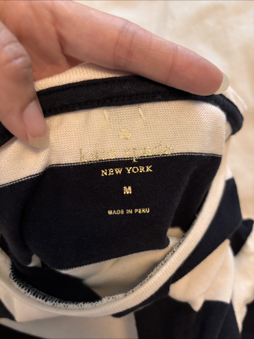 Cute Kate Spade striped tee in size medium! It's made of 100% cotton and has a classic nautical vibe with its black and white stripes. Perfect for a casual, everyday look