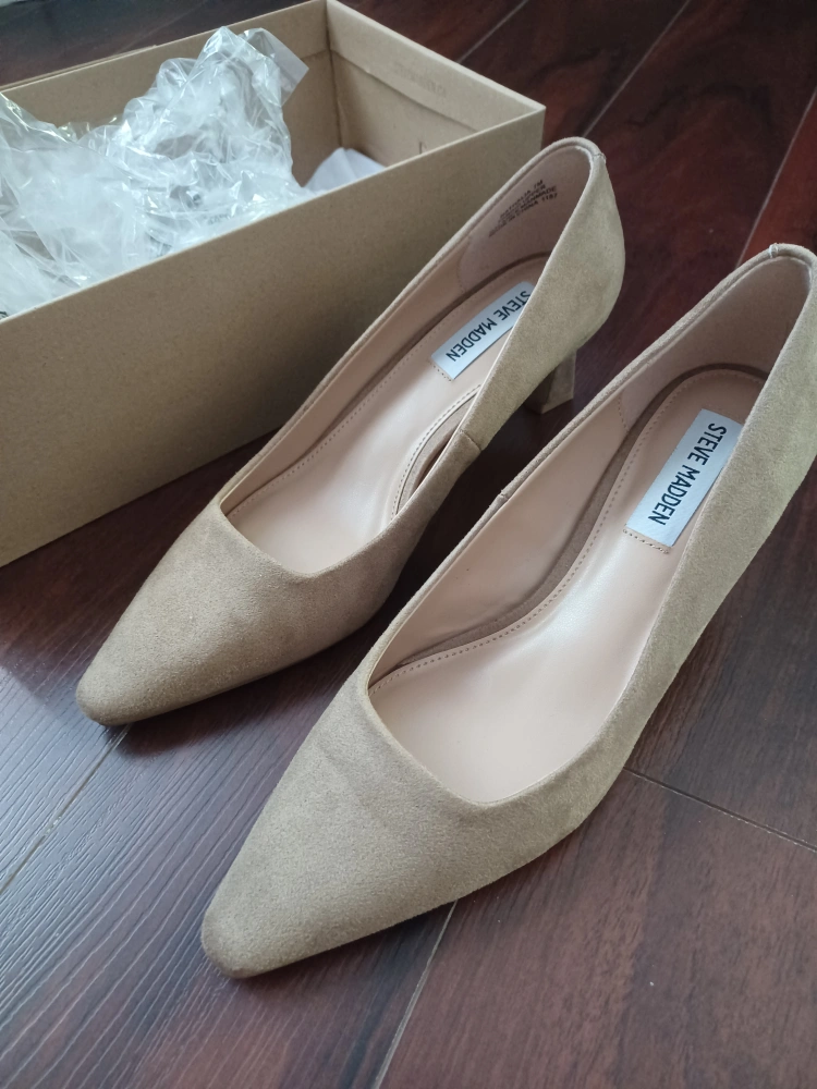 These Steve Madden Nathalia heels are in excellent condition (worn only once). They're almond coloured and come in their original box. Size 7.