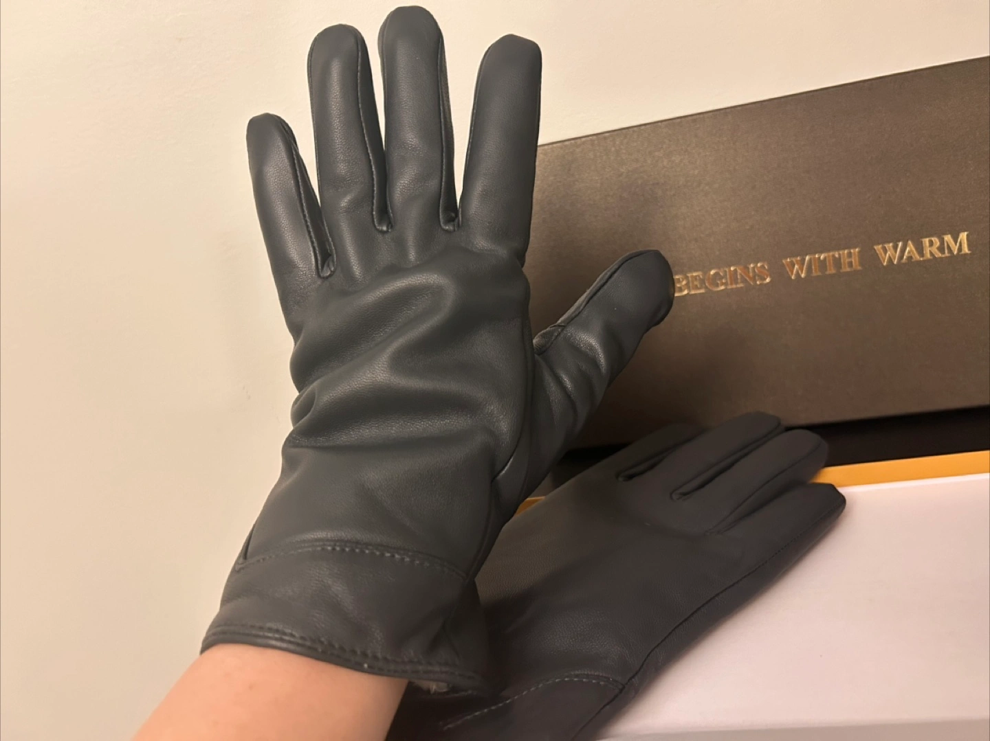Warm Grey Lambskin Gloves (New, Size M–L)