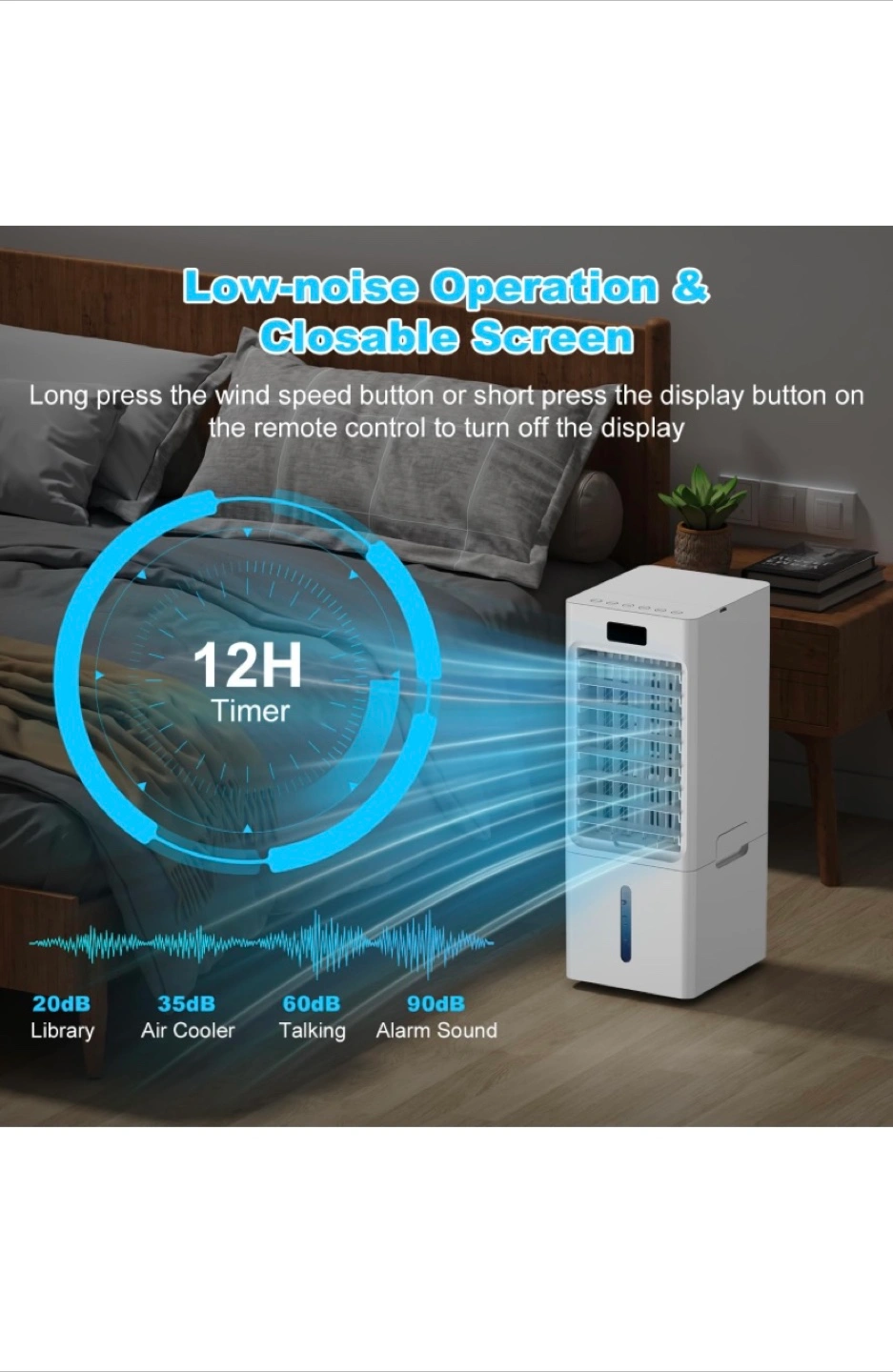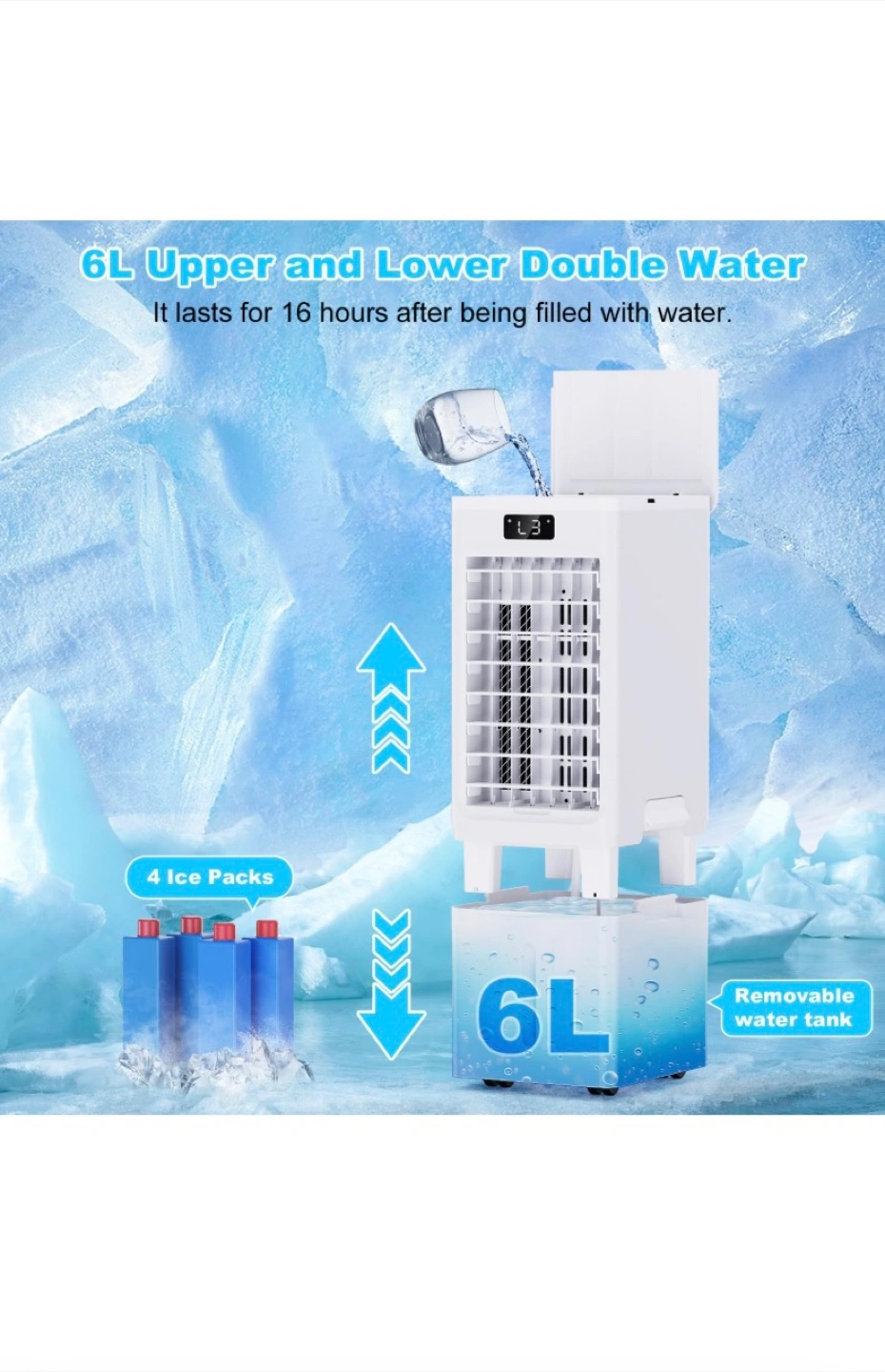 3-in-1 Portable Air Cooler, 6000ML Water Tank with 4 Ice Packs, 3 Speeds & Cooling Modes, 12H Timer, 75° Oscillation, Quiet Sleep Mode, Portable AC Unit with Remote Control