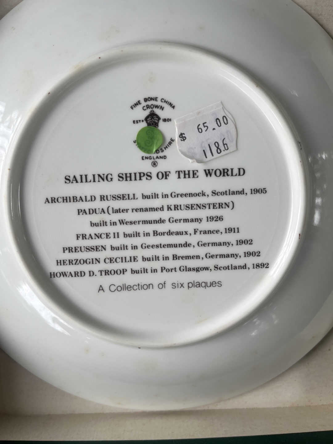 Fine Bone China Sailing Ships of the World Plate