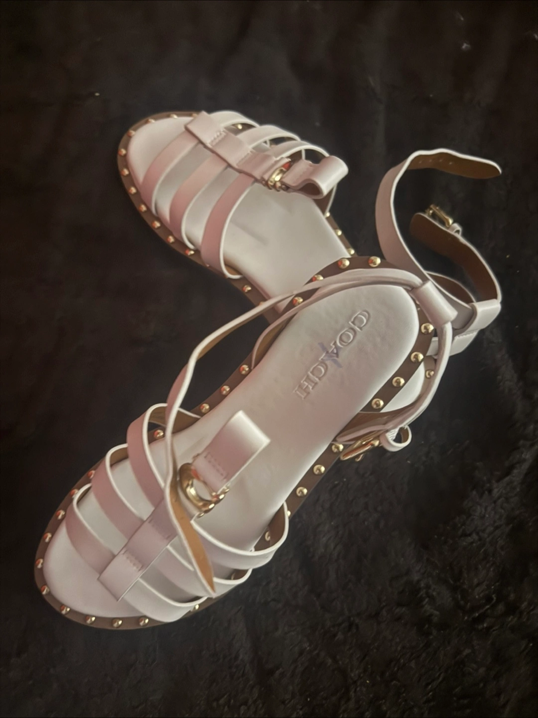 Selling a pair of Coach women's sandals in great condition! They are a size 9 and feature a stylish design with gold studded details. Perfect for adding a touch of elegance to any outfit