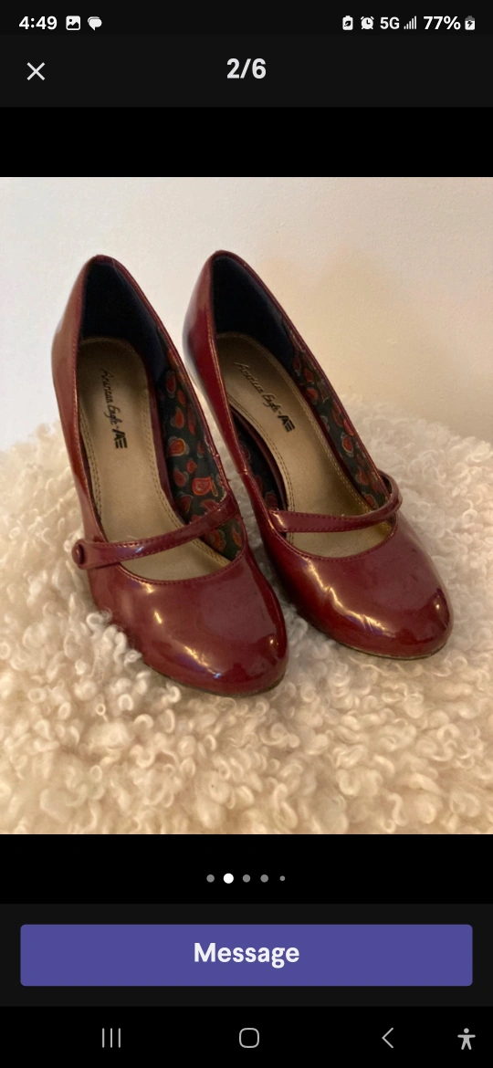 Selling a pair of American Eagle heels in a lovely burgundy colour! They're size 8 and have a cute Mary Jane style strap. Perfect for adding a touch of vintage flair to any outfit