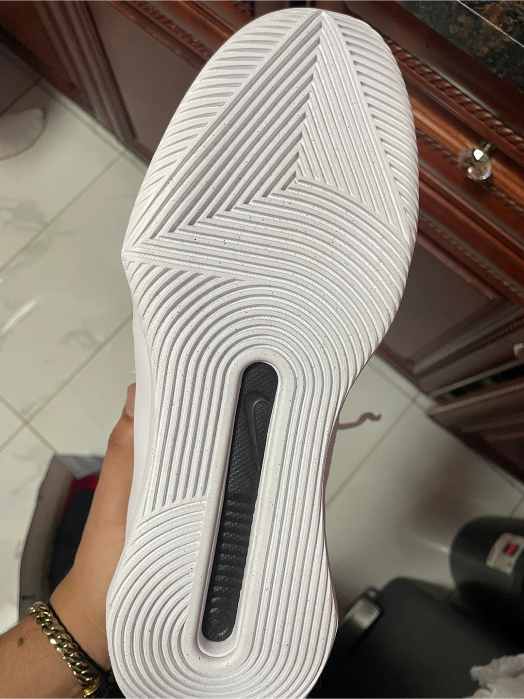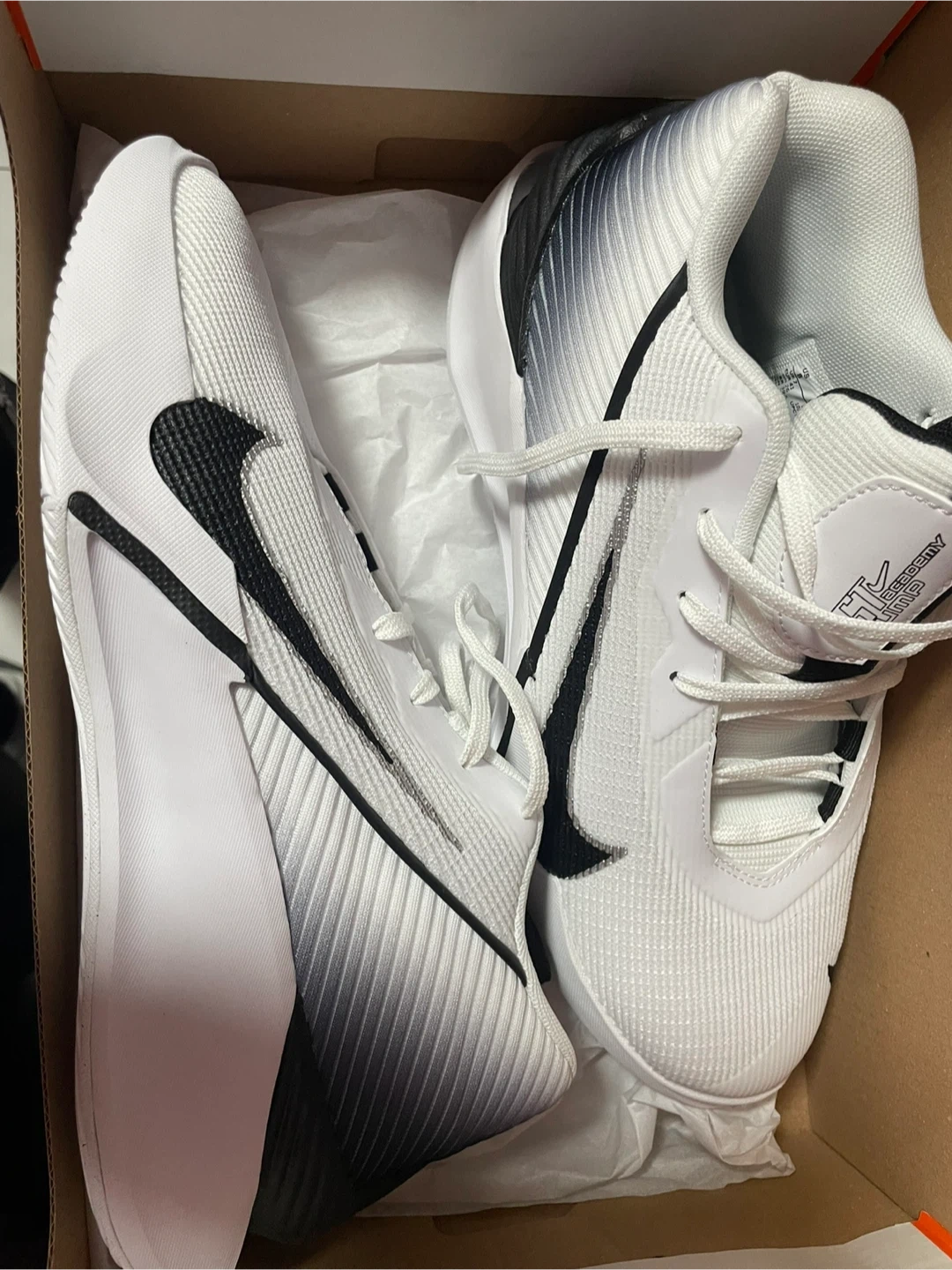 These Nike basketball shoes come in a clean white and black colorway. They're designed for performance on the court. Includes original box. Size 8