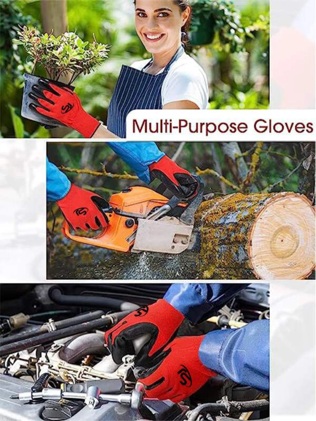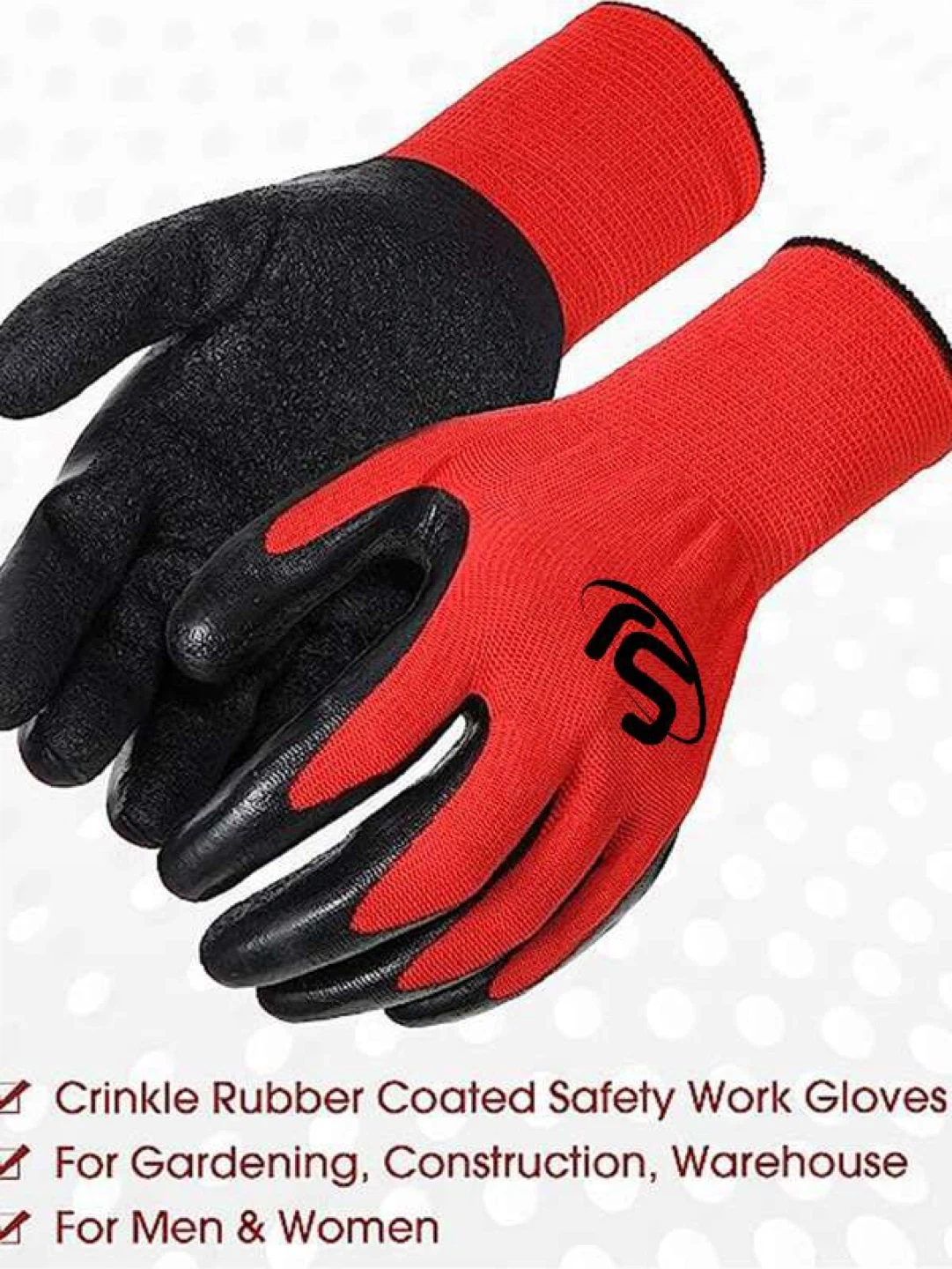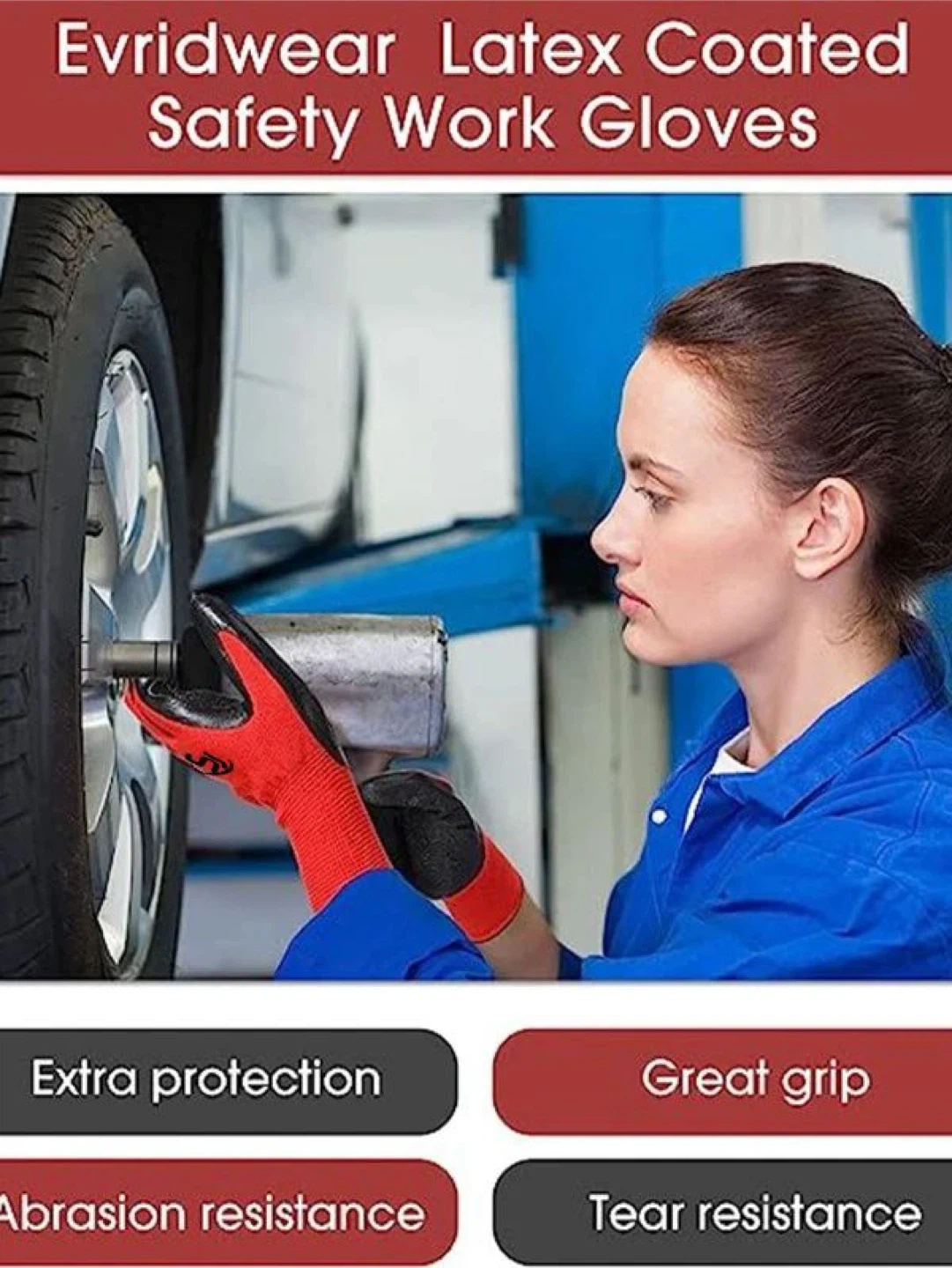 These Evridwear latex coated work gloves offer excellent abrasion and tear resistance. They have a crinkle rubber coating for a great grip in both wet and dry conditions. Ideal for gardening, construction, and warehouse work for men and women!
