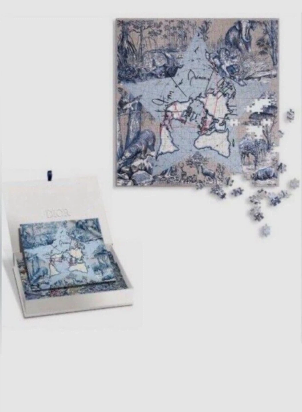 This is a Dior puzzle with a world map design featuring animals. It comes in its original box. The puzzle is suitable for aged 6 years old and above.