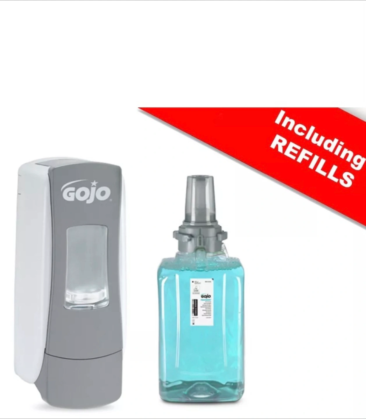 GOJO ADX-12 SOAP DISPENSER & FOAM HAND SOAP Refill Starter Kit, White, 1200mL