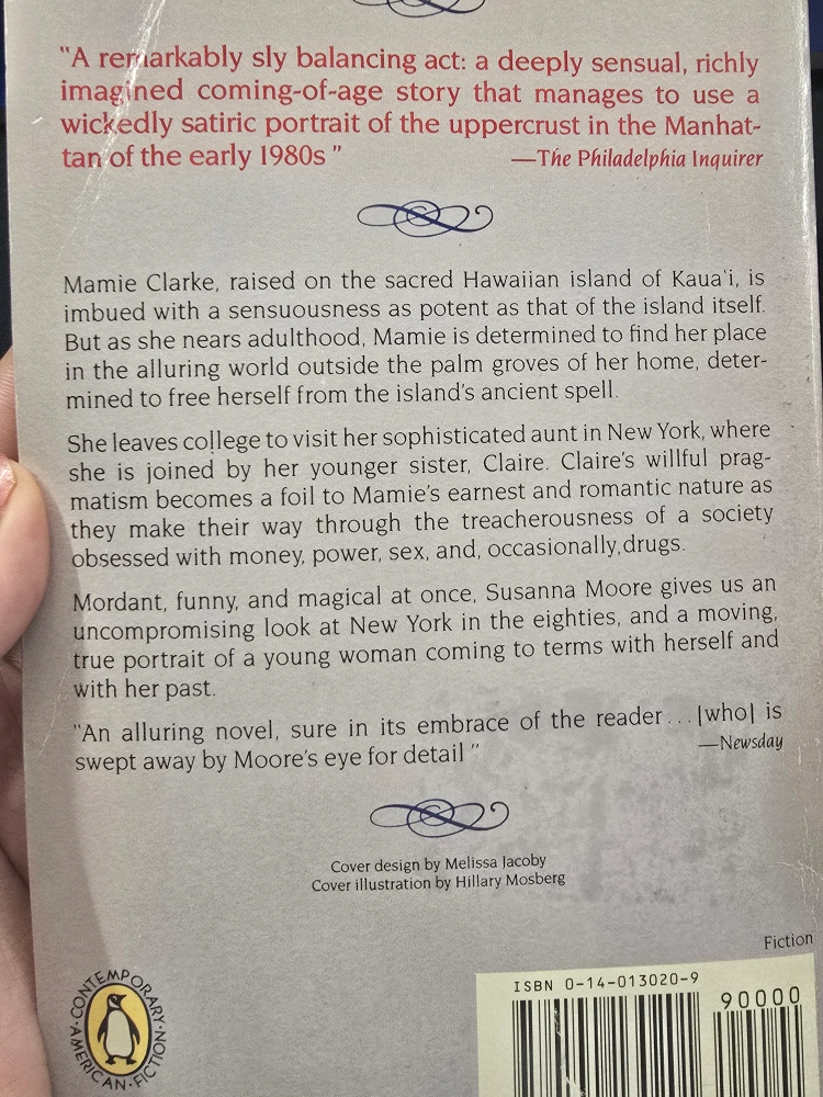 Selling "The Whiteness of Bones" by Susanna Moore. It's a contemporary American fiction novel. The book tells a coming-of-age story set in the 1980s.
