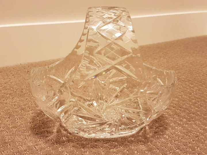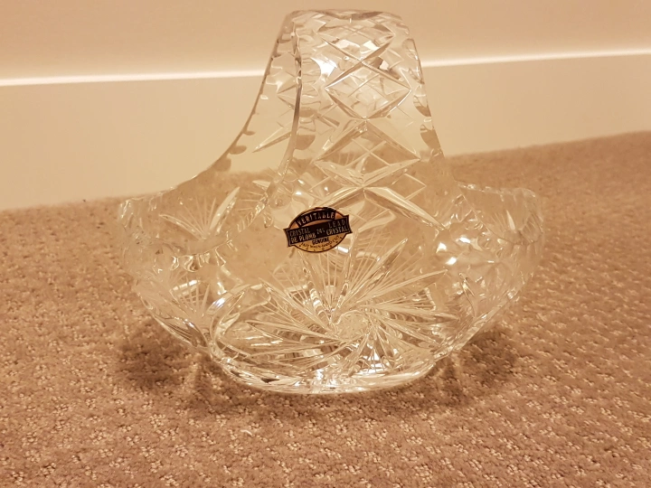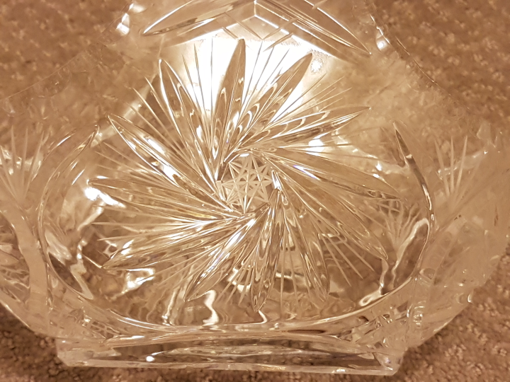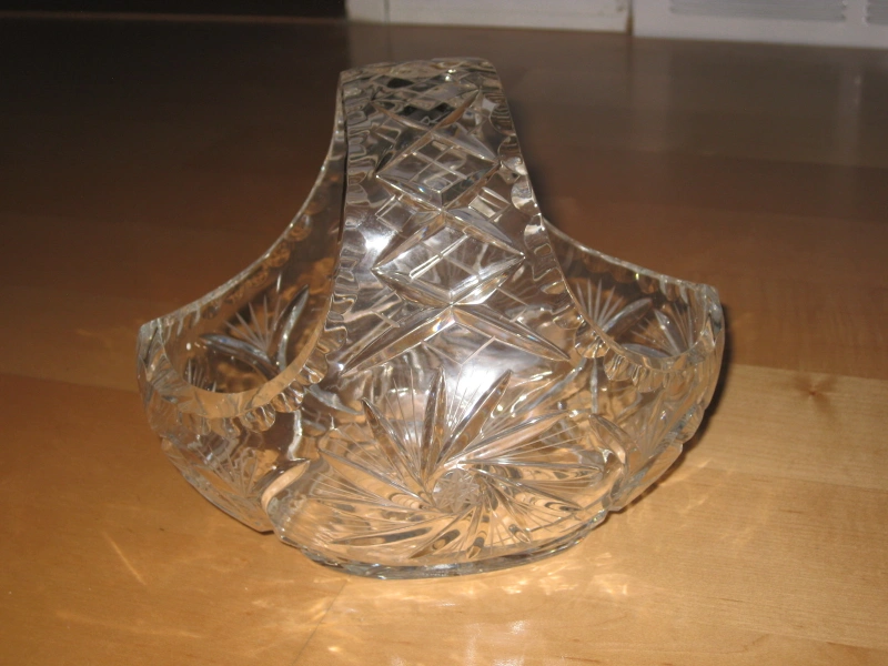 Hand Cut Crystal Pinwheel & Diamond Design Basket w/ Handle