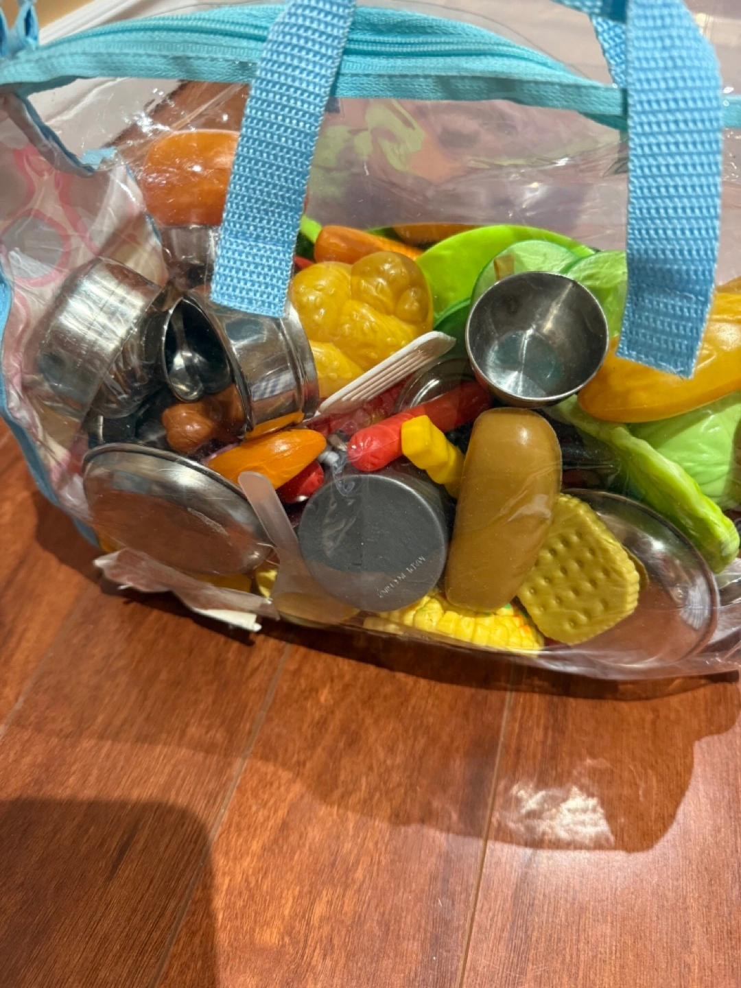 194Toy food set with a variety of items including fruits, vegetables, and cookware. Great for kids who love to play pretend!