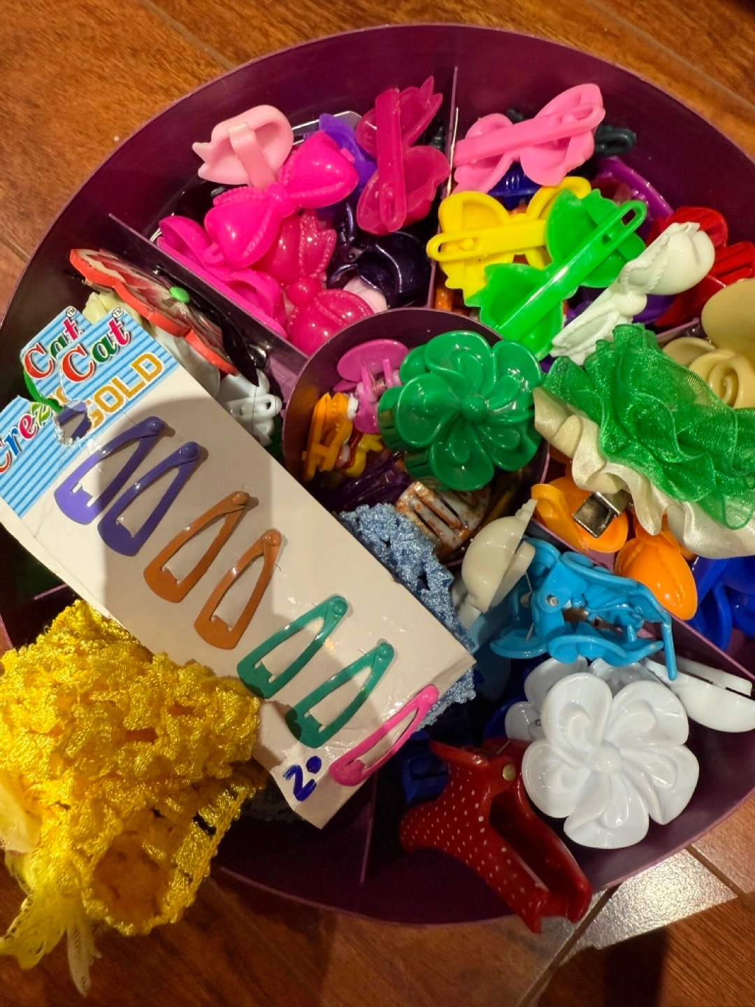 194Selling a big lot of assorted hair accessories! There's a variety of clips, bows, and other fun items. Great for kids or anyone who loves to accessorize their hair. Come take them off my hands!