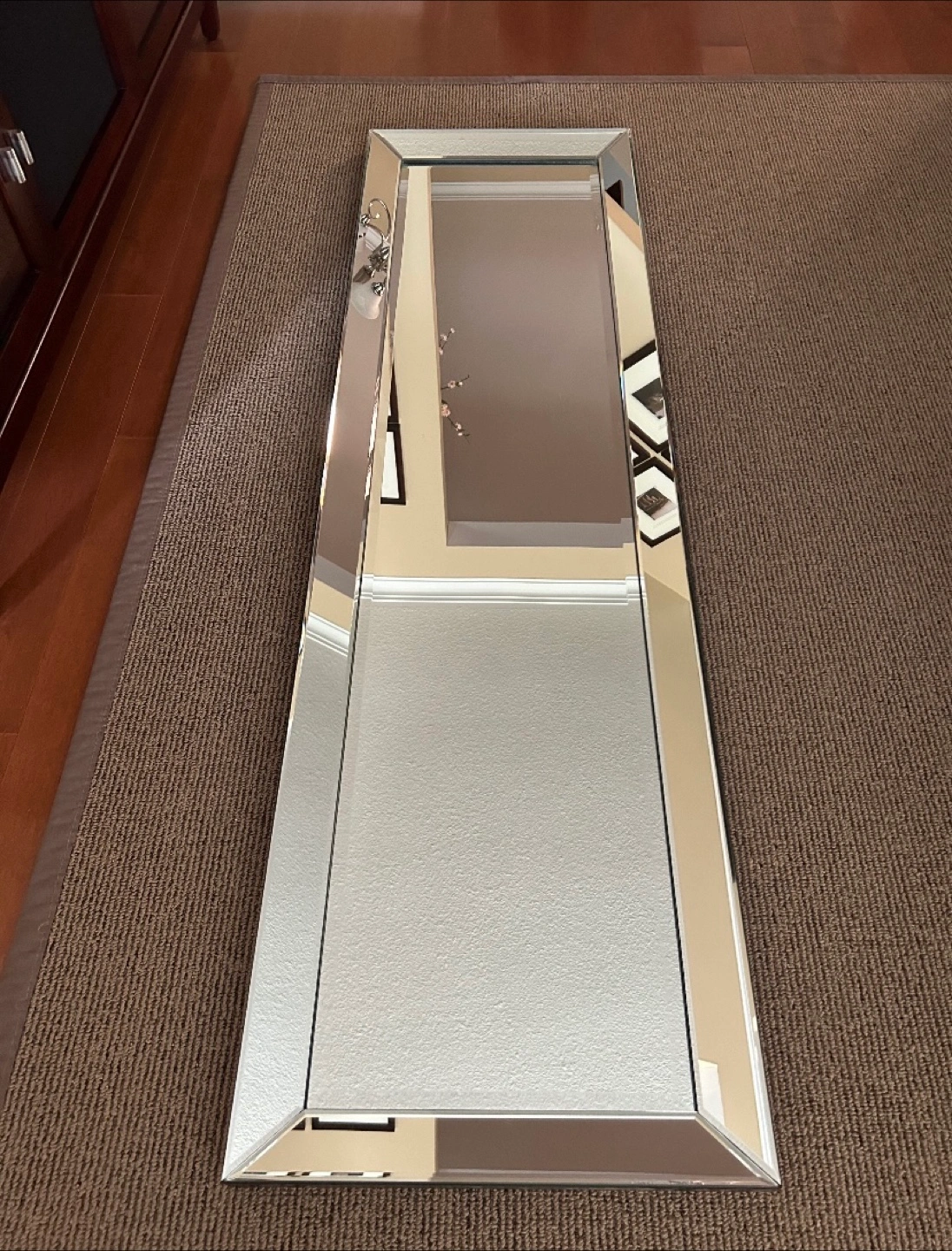 Selling a full-length rectangular mirror! It's in great shape and ready to add some sparkle to your space. The mirror has a sleek design that would fit well in any room