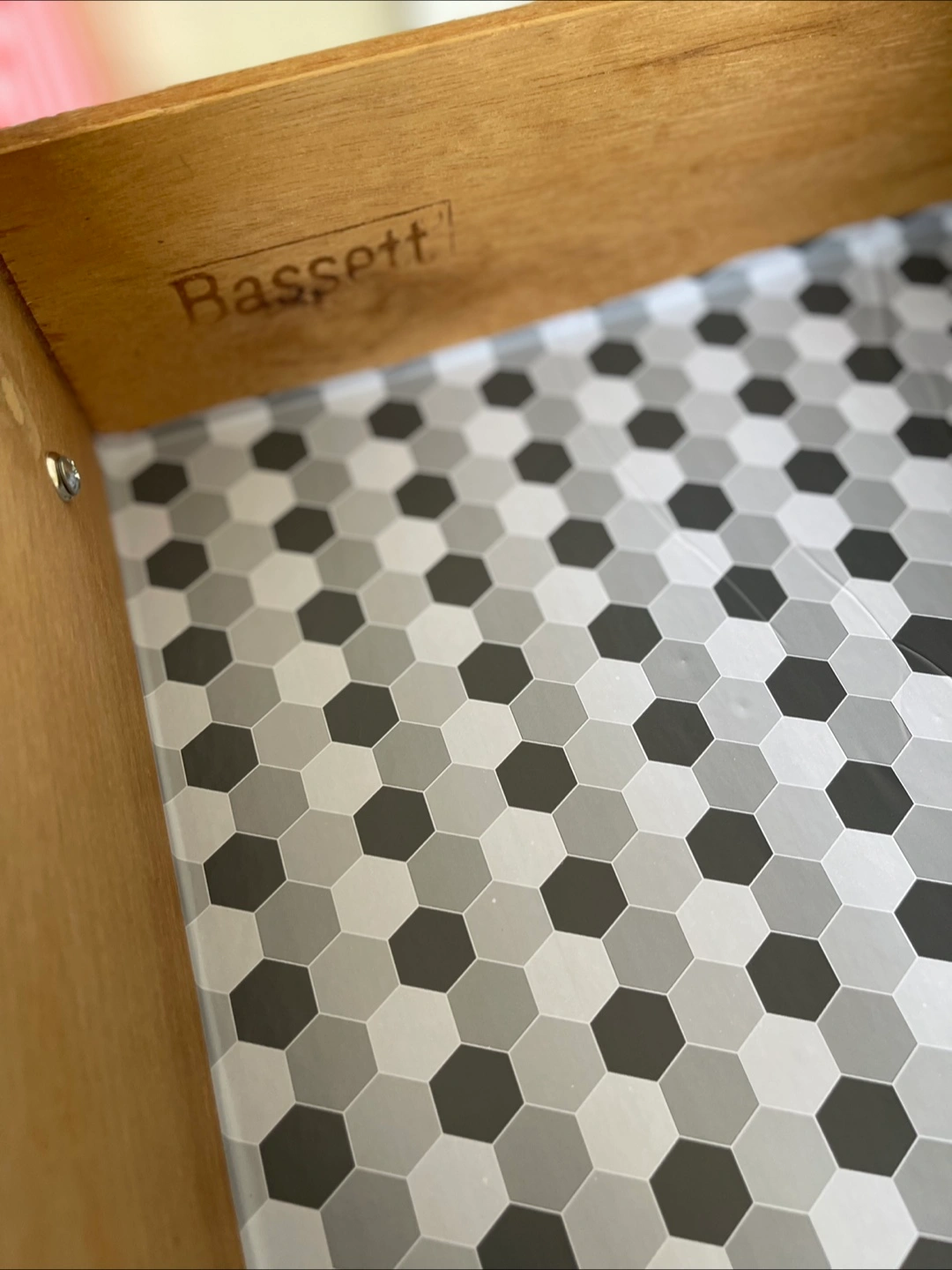 All the drawers are working very good and are lined with new contact paper, extremely clean. Solid wood. Paired up with new hardware. Deep drawers, lots of storage.
