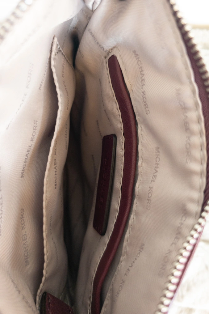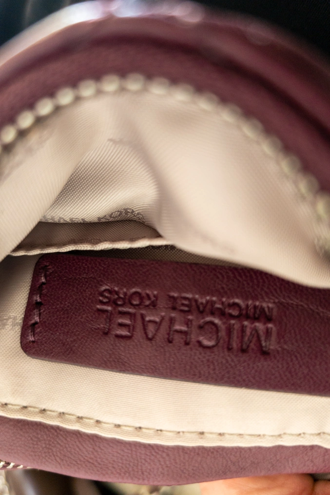 This is a Michael Kors crossbody bag in a beautiful quilted leather design. It's perfect for everyday use or a night out! The color is a rich burgundy. It features a chain strap and a secure closure. It's in great NEW condition and ready for a new home