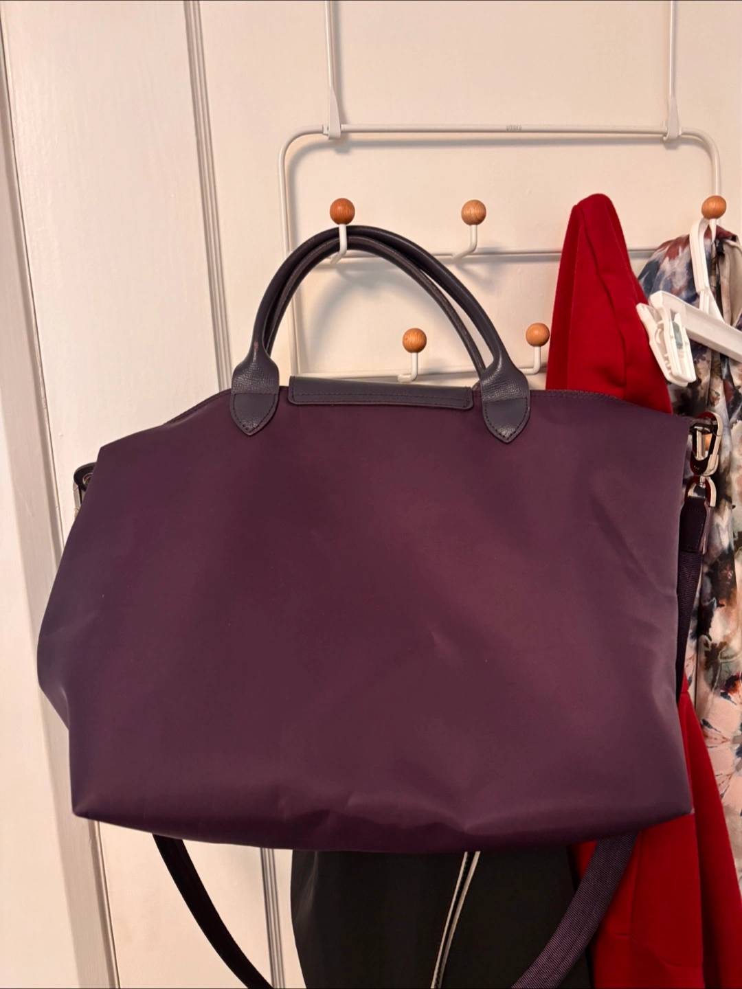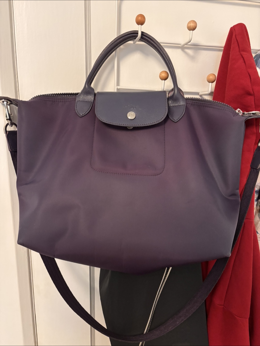 Selling a Longchamp tote bag in a lovely shade of purple! There are pair of handles and one long strap, perfect for everyday use or travel. It’s in good condition