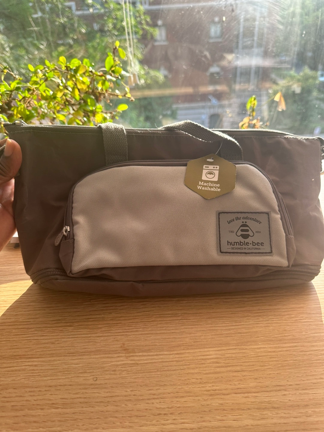 This Humble-bee stroller bag is perfect for keeping all your baby essentials organized! It features a convenient front pocket and is machine washable for easy cleaning.