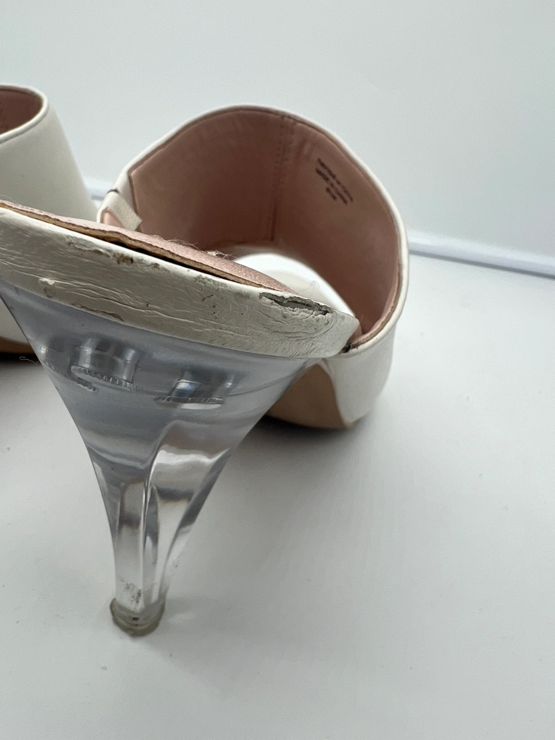 Avec Les Filles Jazz White Leather Lucite Heel Mules sz 9.5