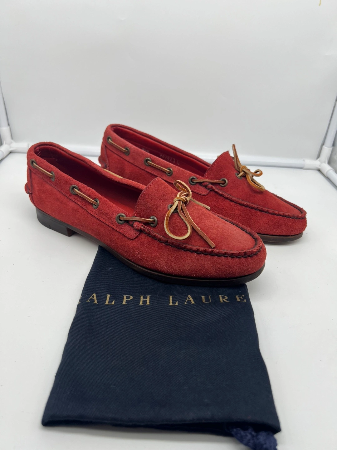 Ralph Lauren Vintage Orange Red Suede Leather Loafers sz 8.5