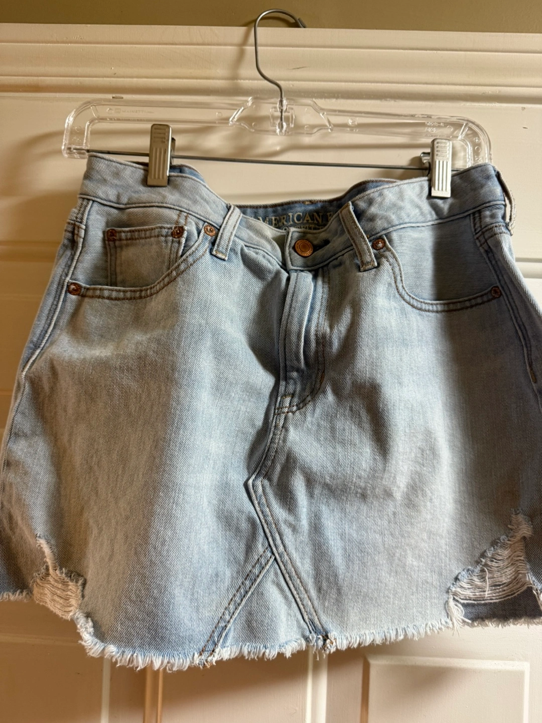Selling a cute American Eagle denim skirt in a size 8! It’s in great condition and ready for a new home. The skirt has a light wash and a stylish, slightly distressed hem. Perfect for casual outings or dressing up!