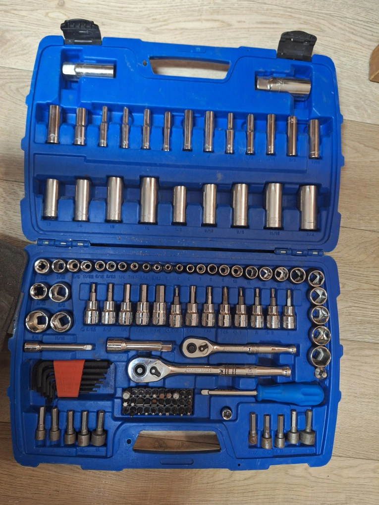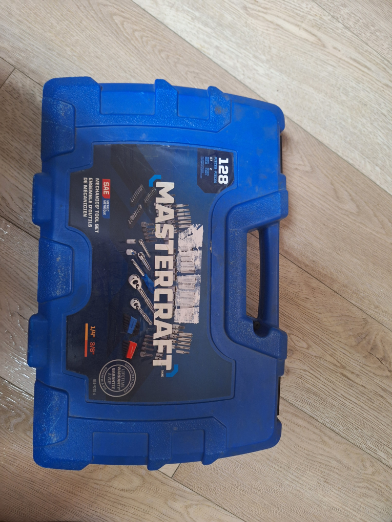 Selling a Mastercraft 128-piece socket set! It includes both SAE and metric sizes, so you'll be ready for any job. The set comes in a sturdy blue case to keep everything organized and protected.