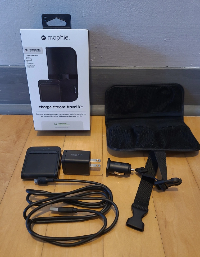 Selling a Mophie Charge Stream Travel Kit in excellent condition! This compact wireless kit includes a charge stream pad mini, wall charger, car charger, 1.5m USB cable, and a convenient carrying pouch.
