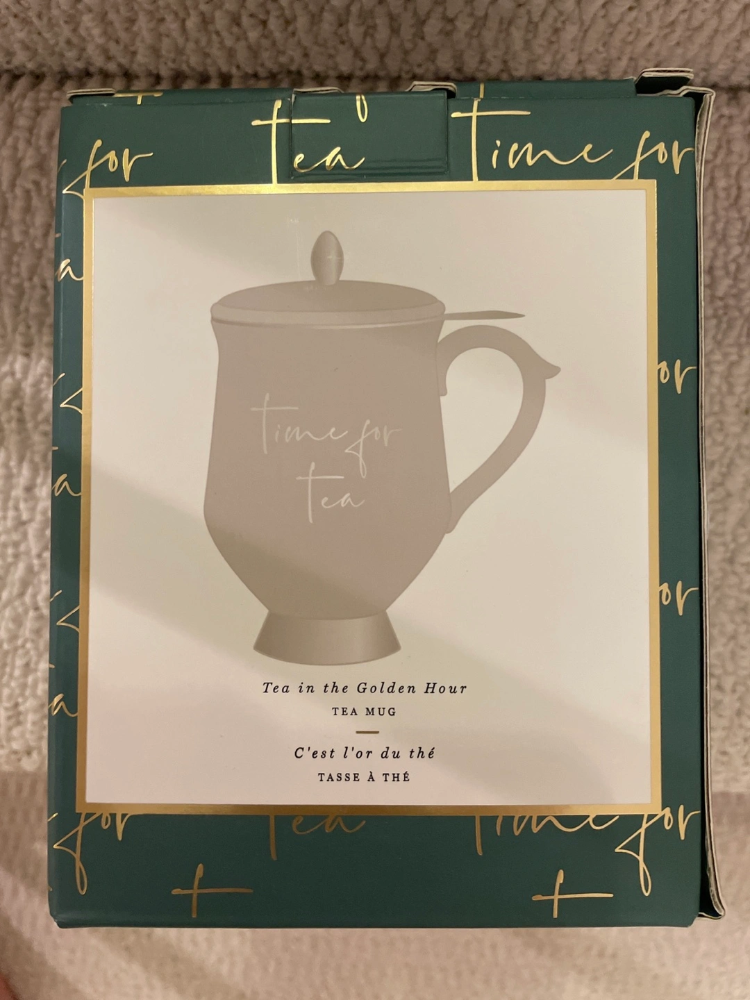 Selling a brand new Indigo "Time for Tea" mug with a stainless steel infuser! It's a 15 oz / 443 mL mug, perfect for a cozy tea time. The box is included, so it's great for gifting too.