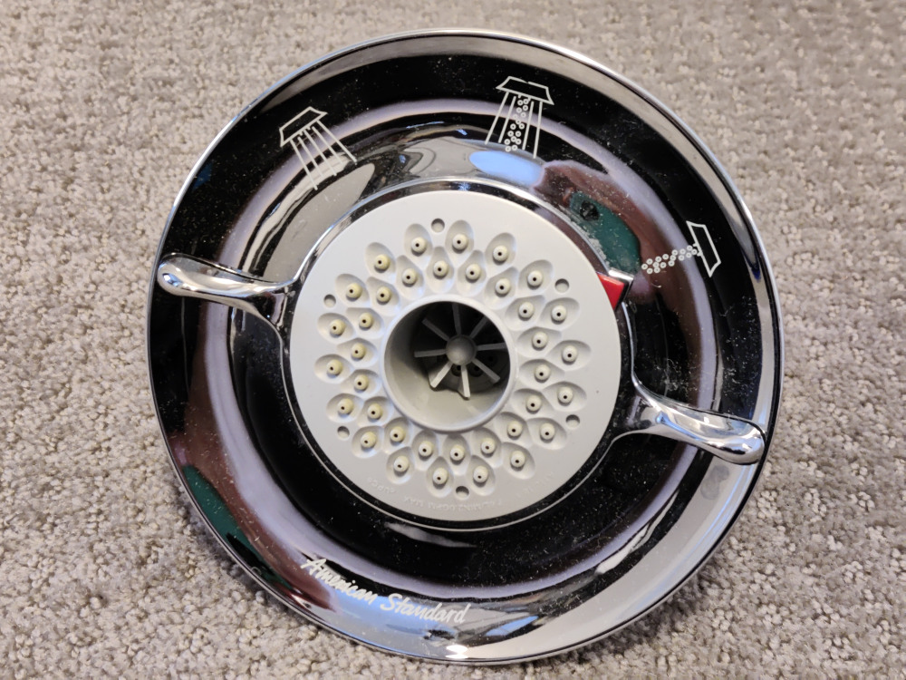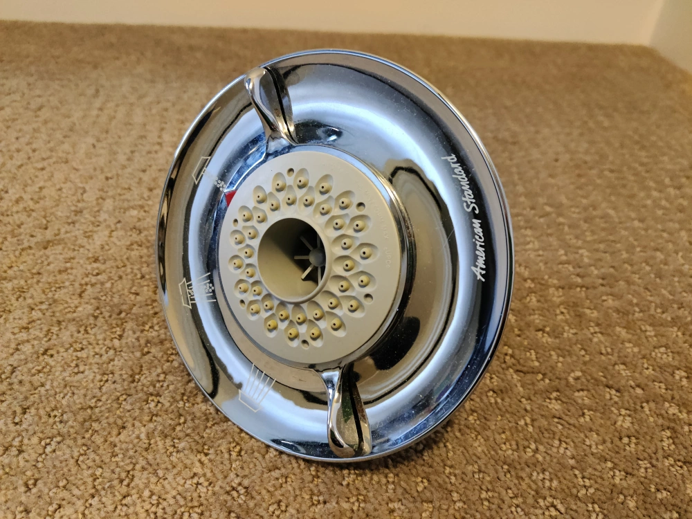 I am selling an American Standard FloWise Transitional 3-Function Water Saving Showerhead / Shower Head in used, working condition. Swing tab control between 3 spray settings. Use exclusive turbine technology to deliver an invigorating shower experience while saving water.